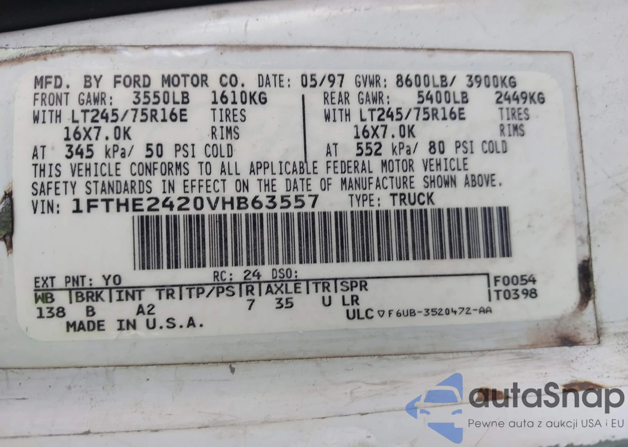 • VIN 5TFDY5F17HX656156