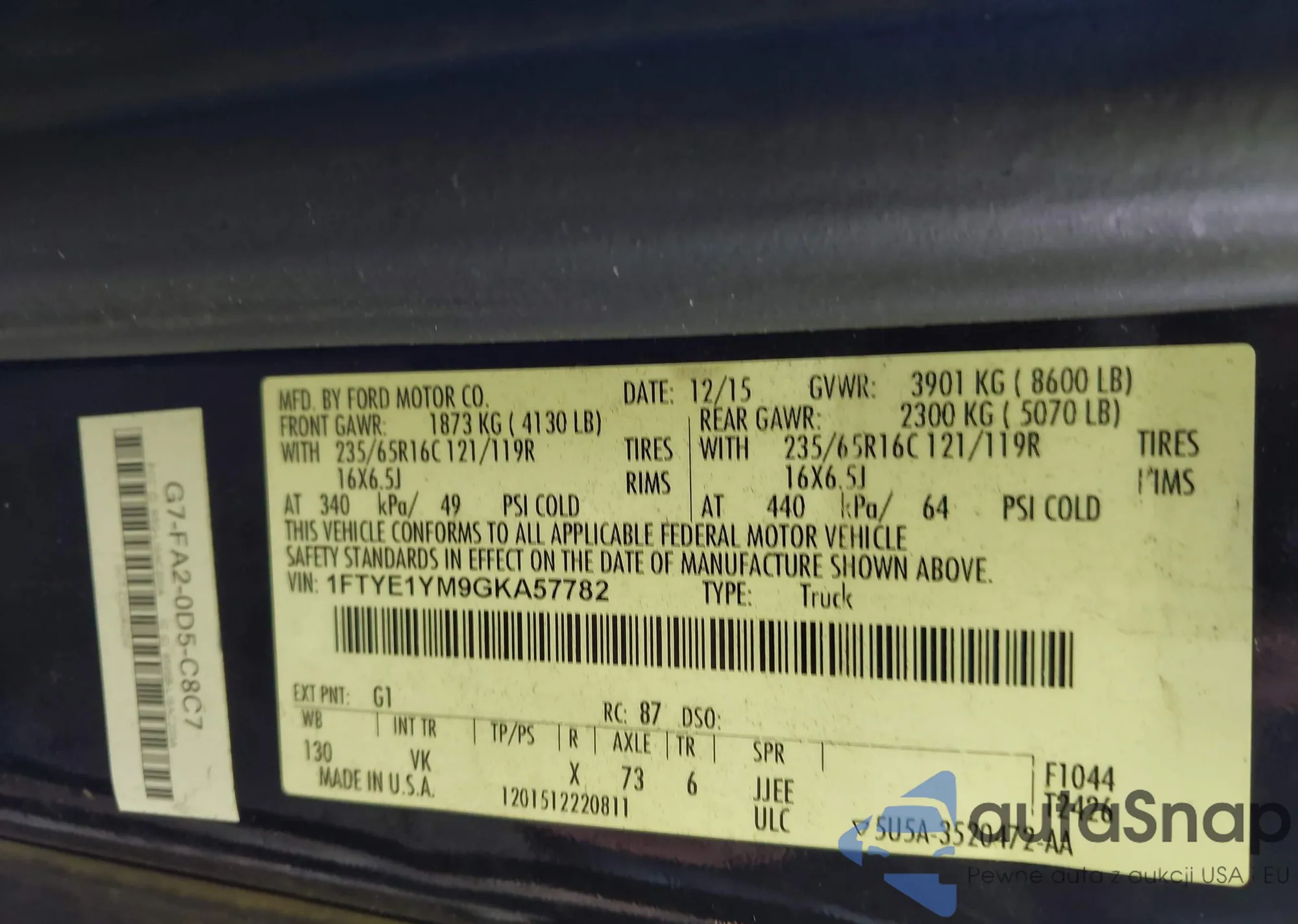 LOT: 43327702 VIN: 5XXGU4L31GG009041