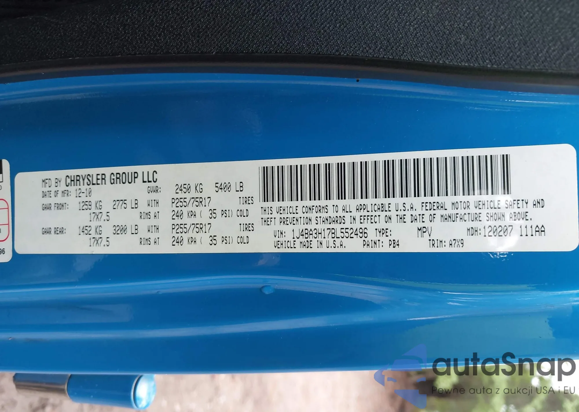 • VIN 1C4SJUAP7RS160158