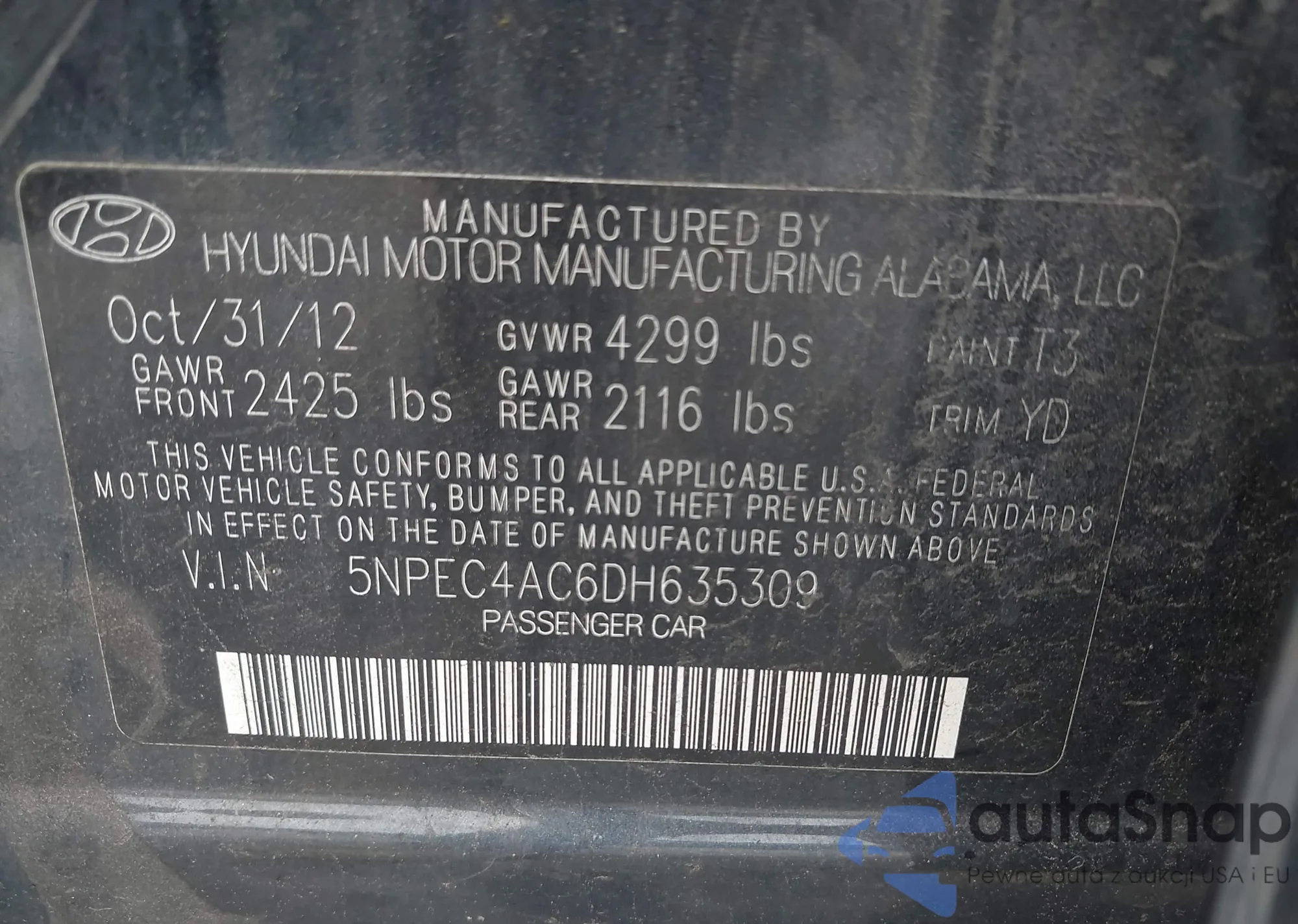 • VIN 5NPEC4AC6DH635309