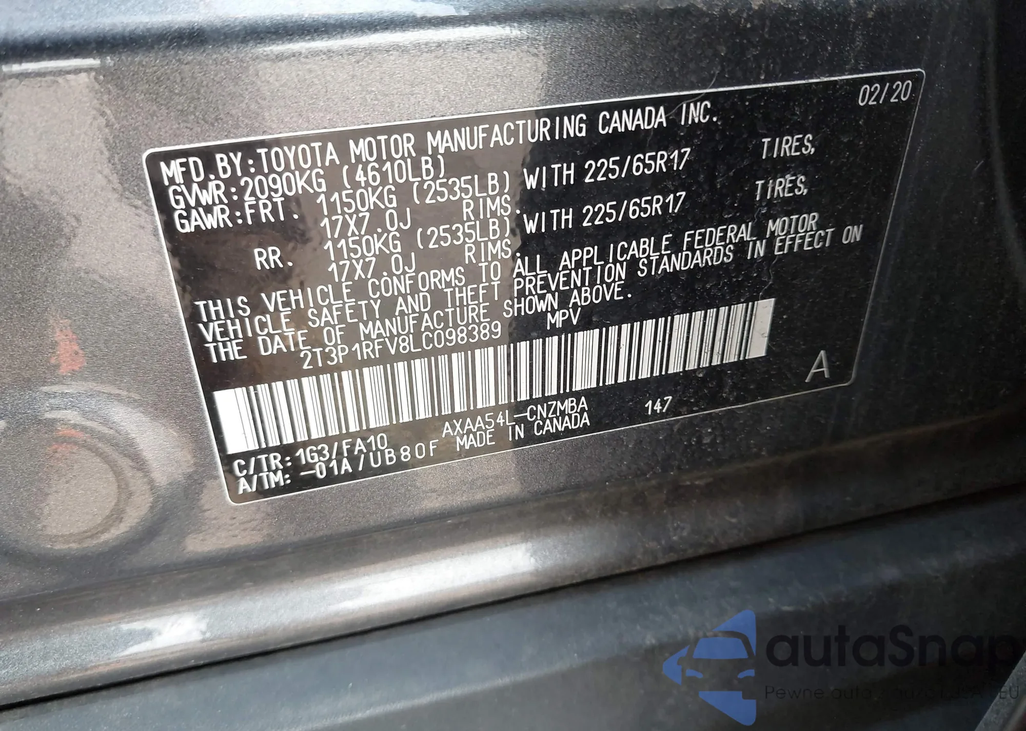 • VIN 2T3P1RFV8LC098389