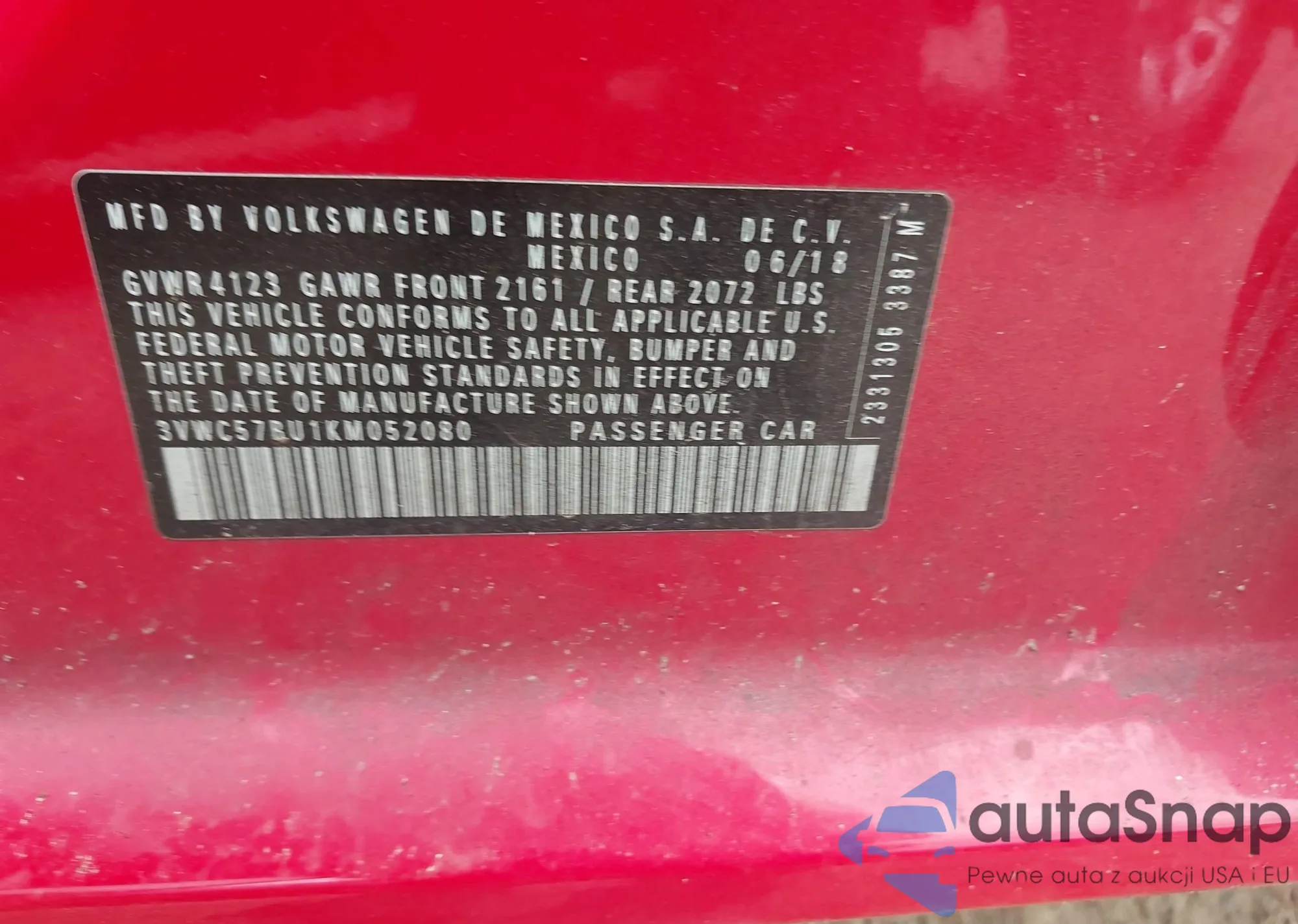 • VIN 3VWC57BU1KM052080