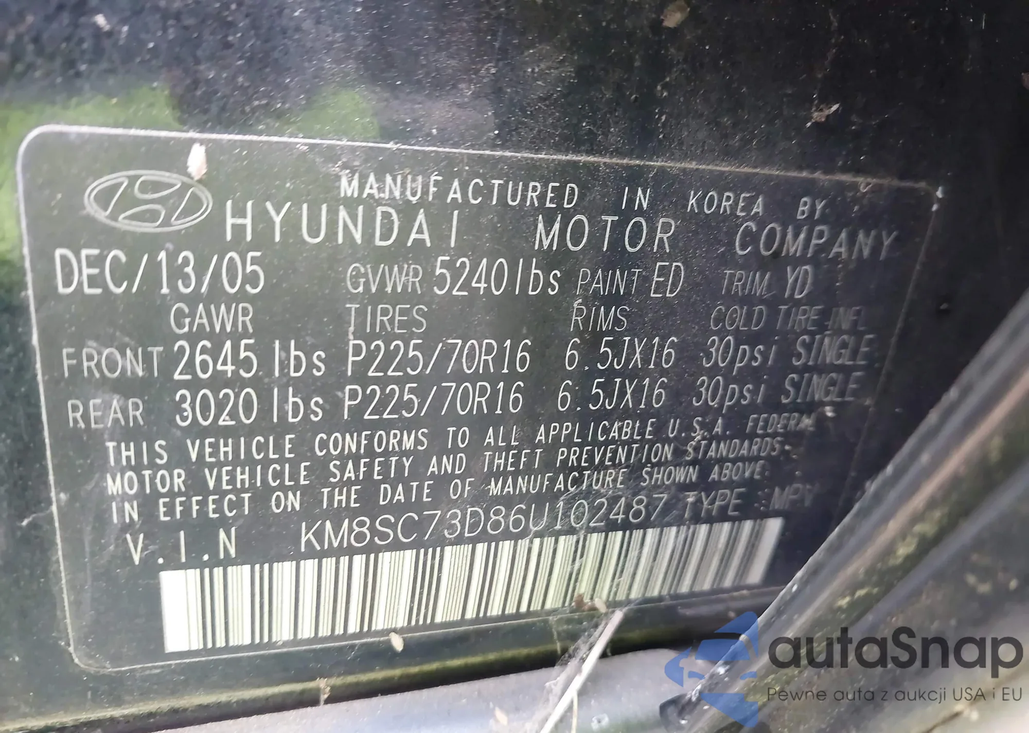 • VIN 5NPEG4JA9MH129122