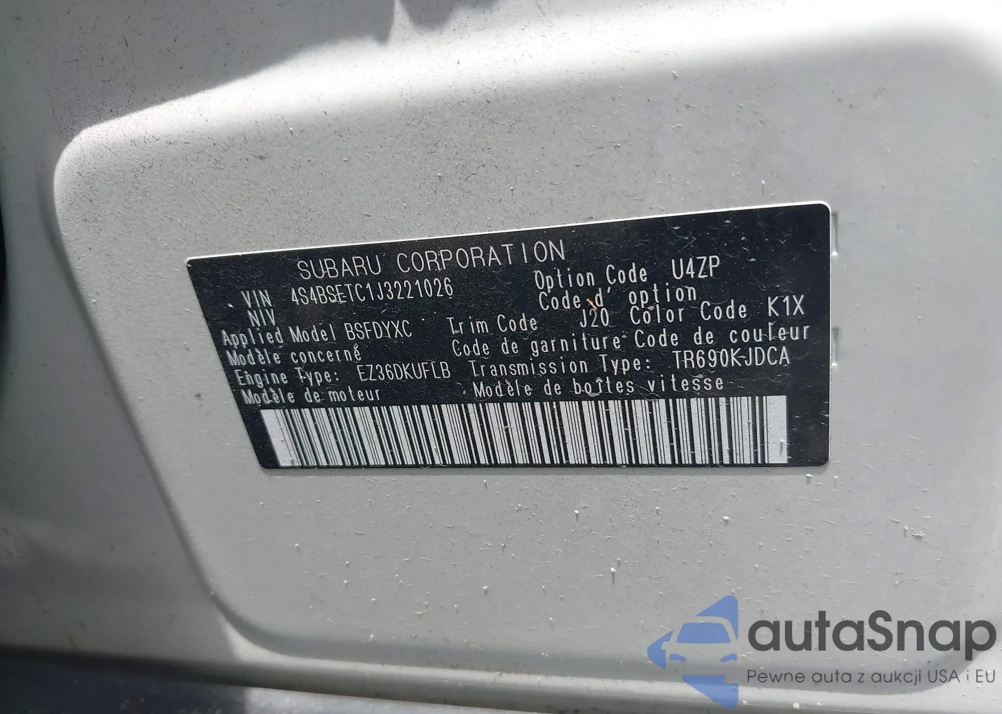 • VIN 4S4BSETC1J3221026