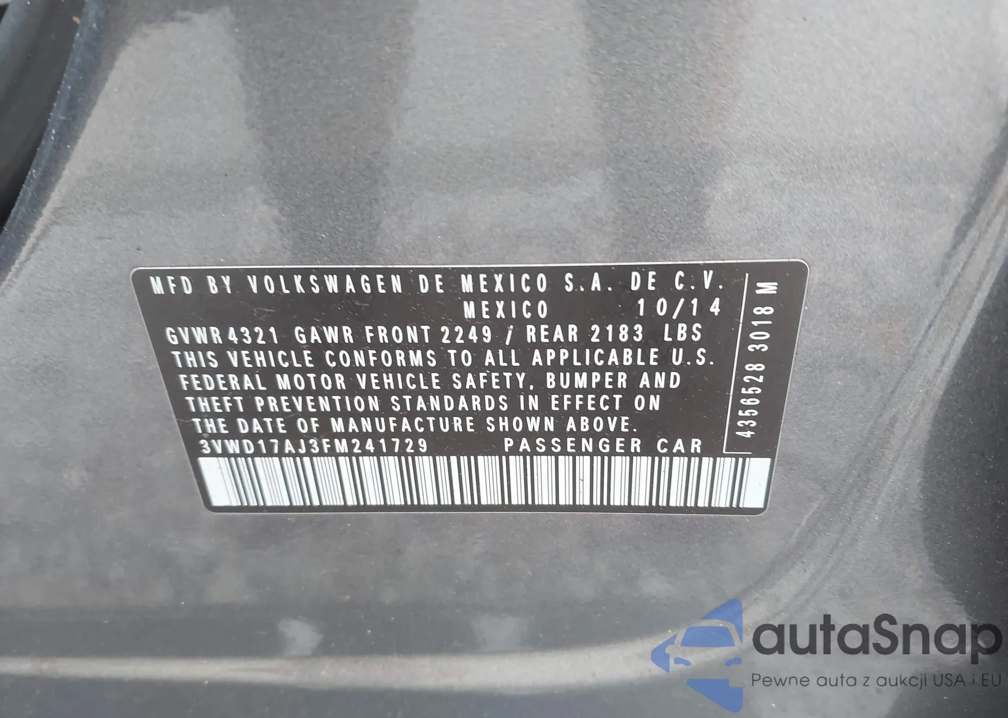 • VIN WA1B4AFY0M2007809