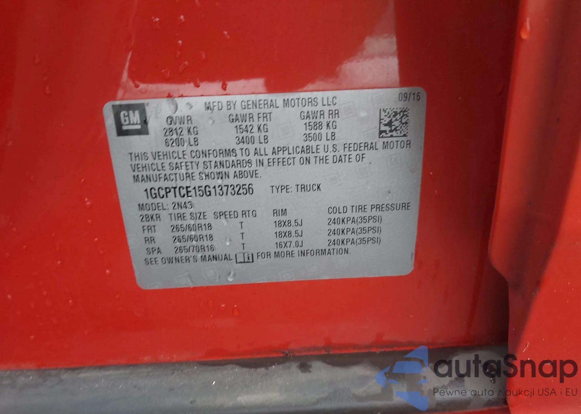 • VIN 1GCPTCE15G1373256