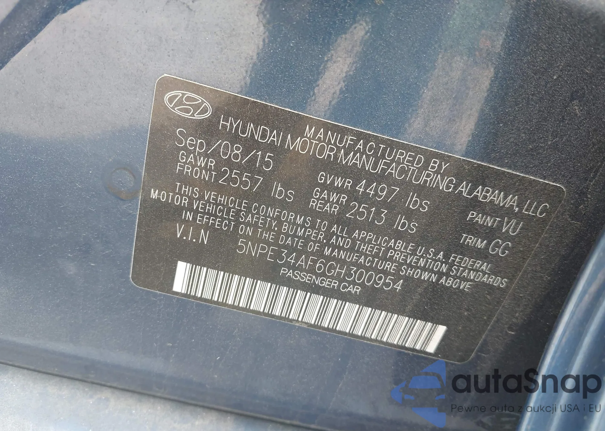 • VIN 5NPE34AF6GH300954