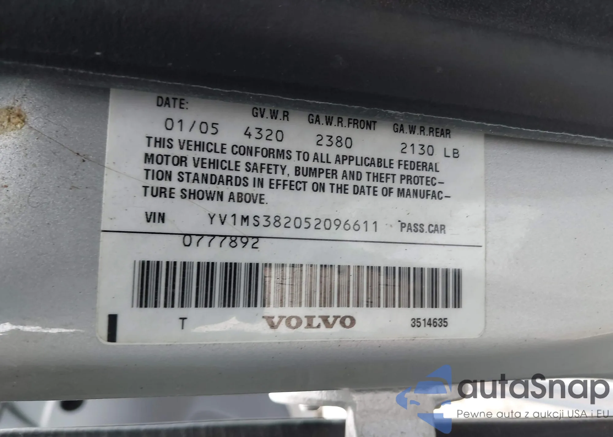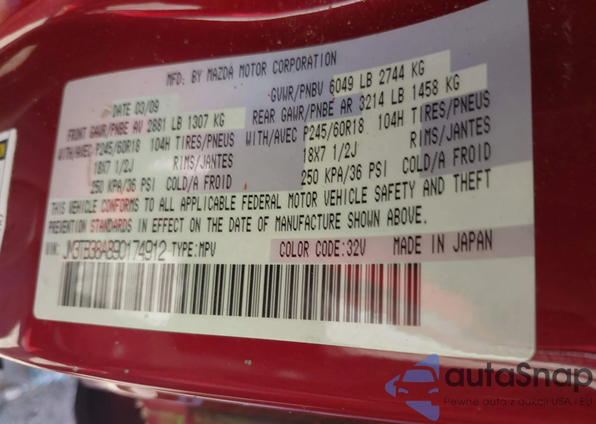 LOT: 43306904 VIN: JM3TB38A890174912