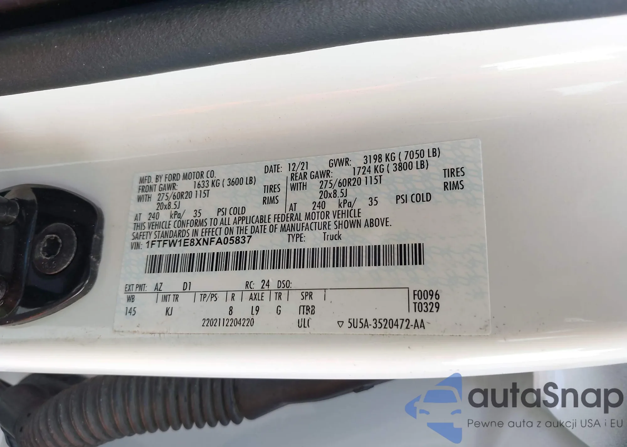 LOT: 43270616 VIN: 1FTFW1E8XNFA05837