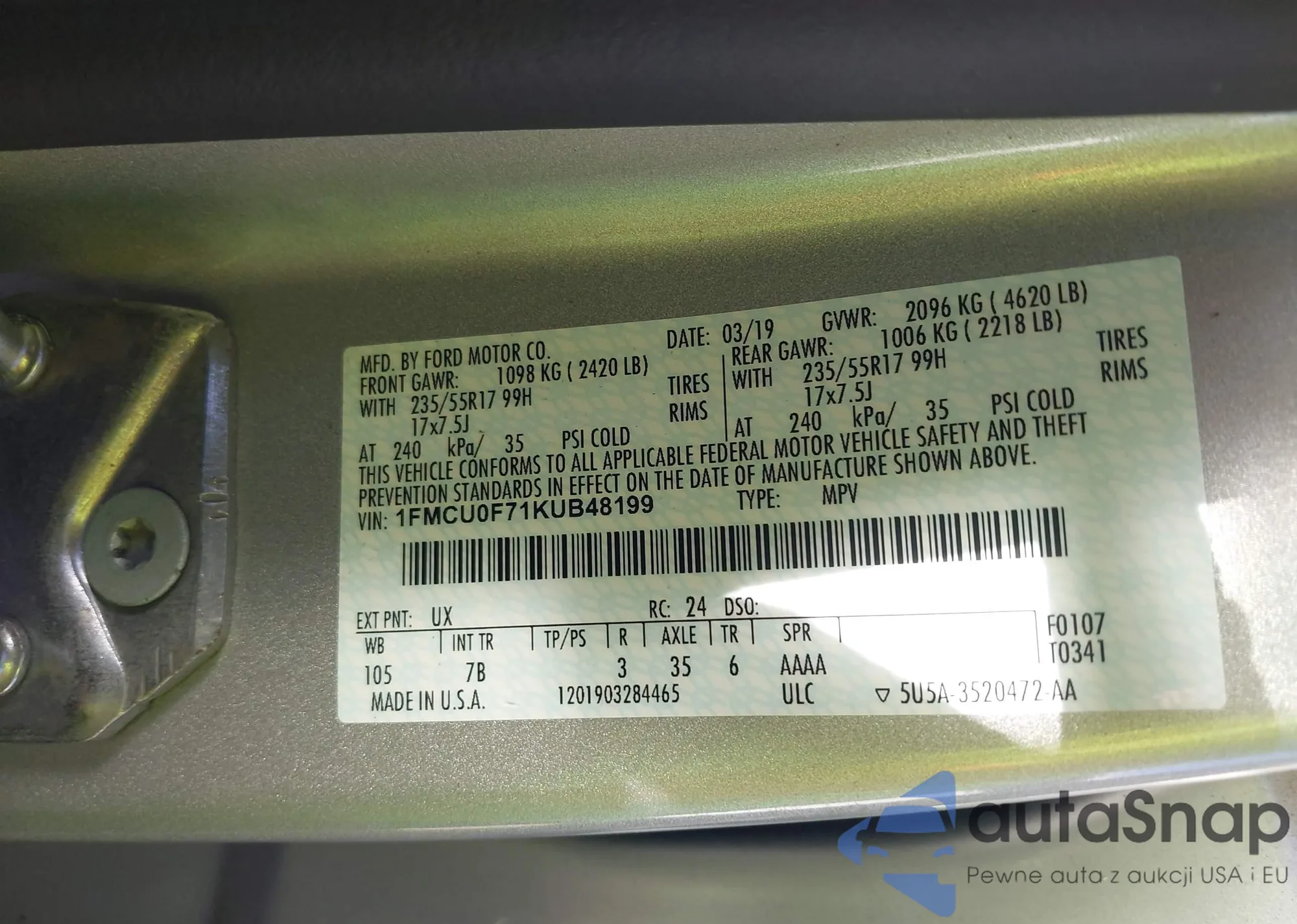 • VIN 1FMCU0F71KUB48199