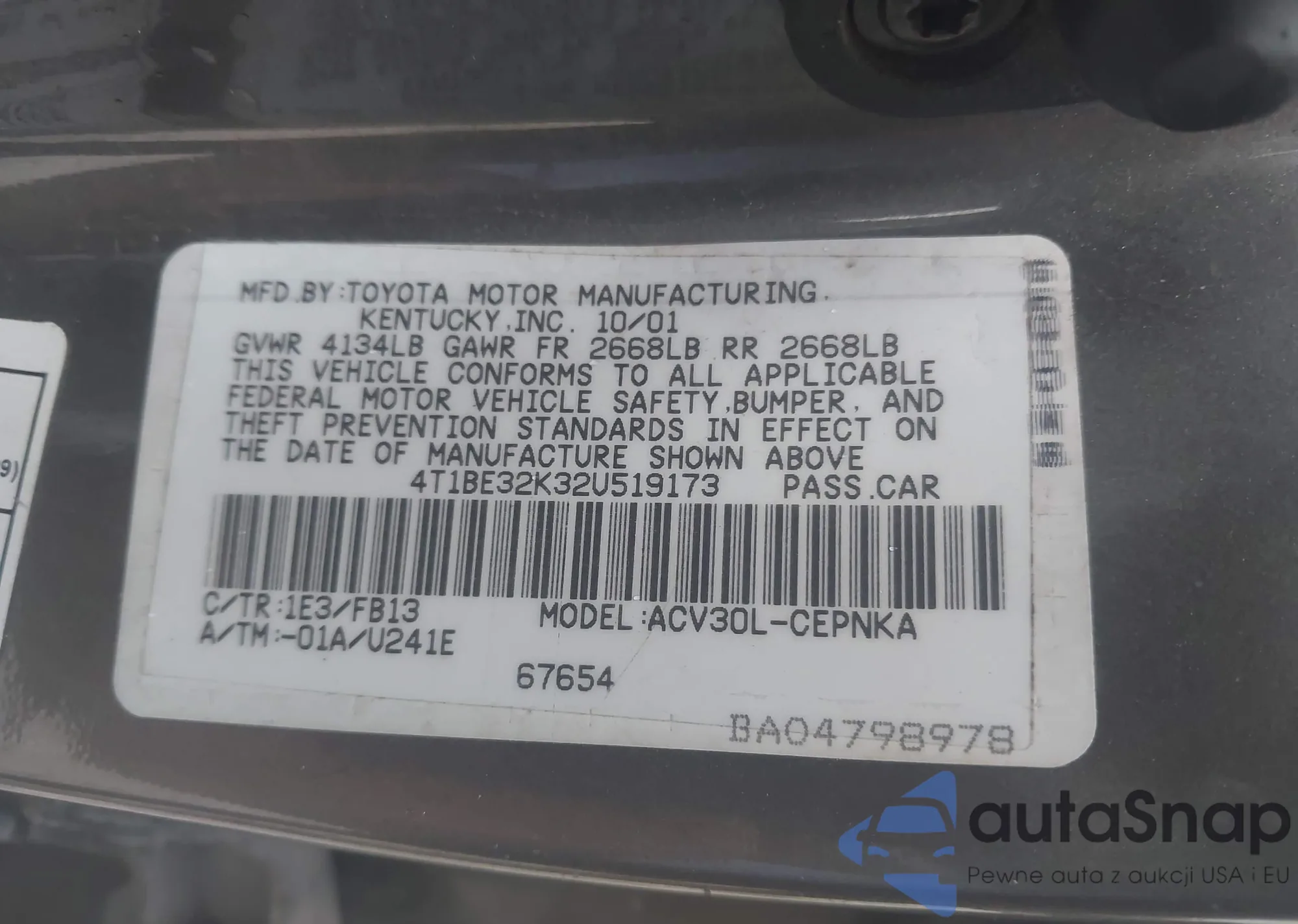 • VIN 4T1BE32K32U519173