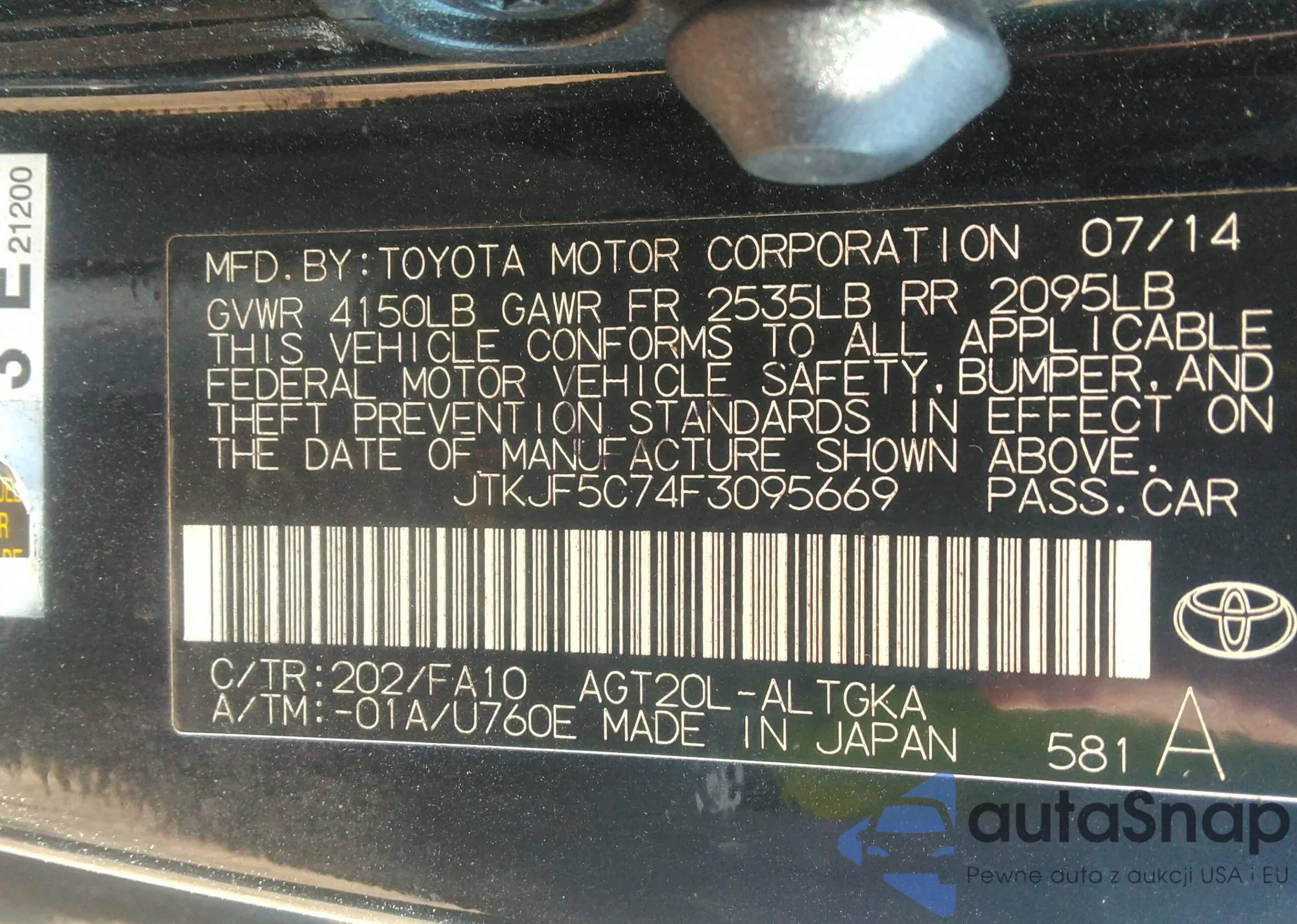 • VIN JTKJF5C74F3095669