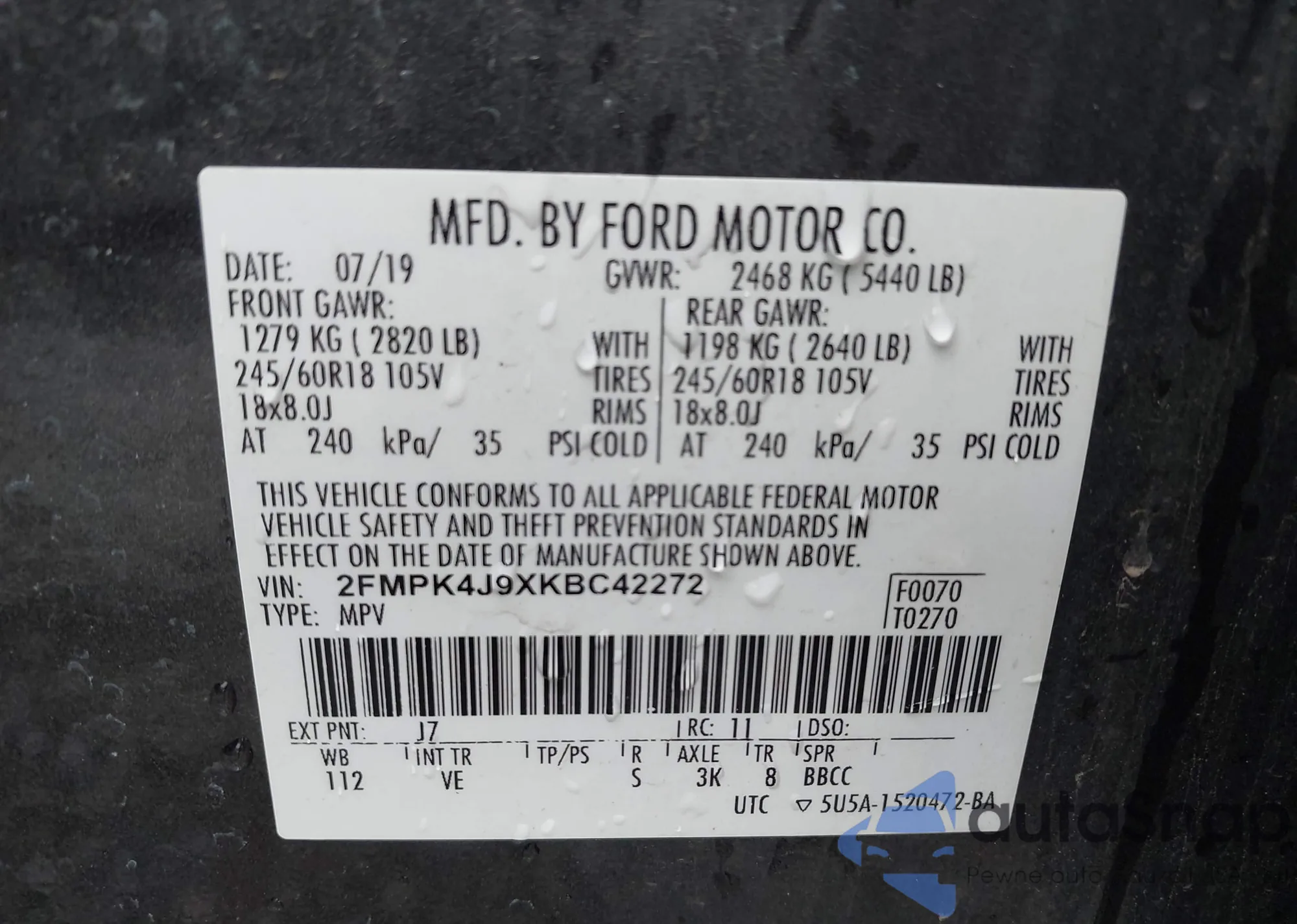LOT: 43246272 VIN: JTKJF5C74F3095669