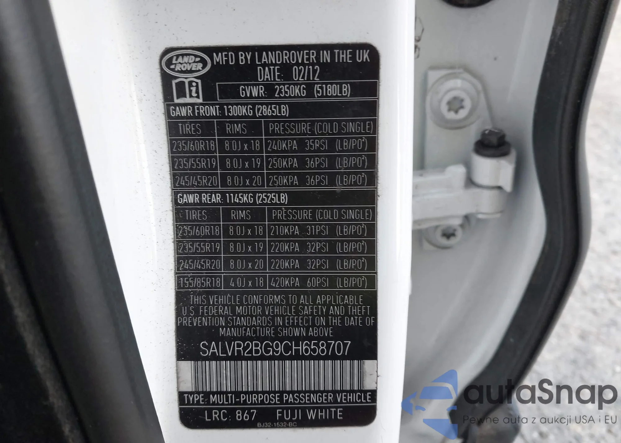 • VIN SALVR2BG9CH658707