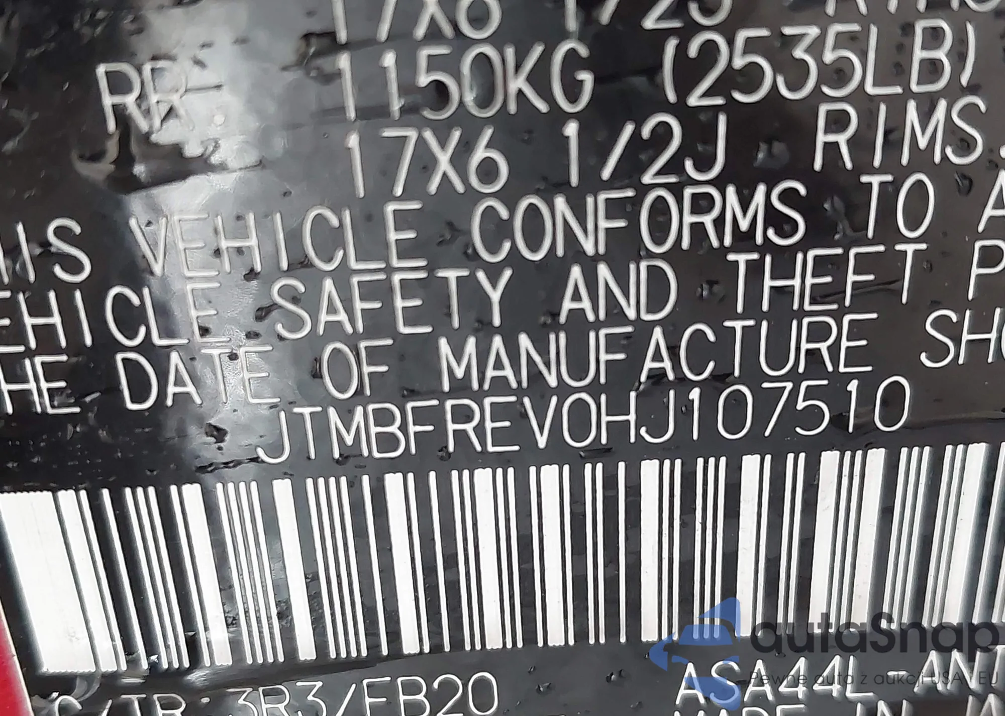 • VIN JTMBFREV0HJ107510