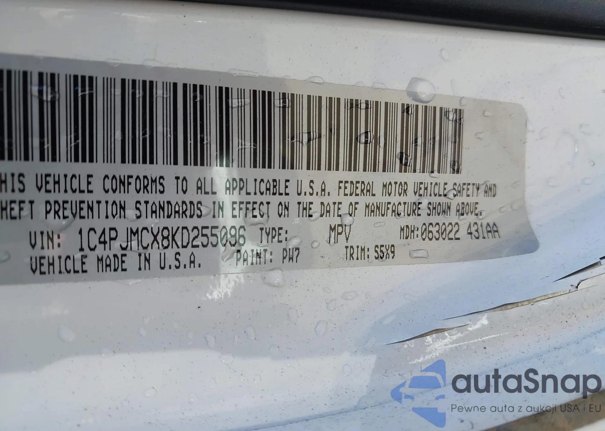LOT: 43409512 VIN: 1C4PJMCX8KD255096