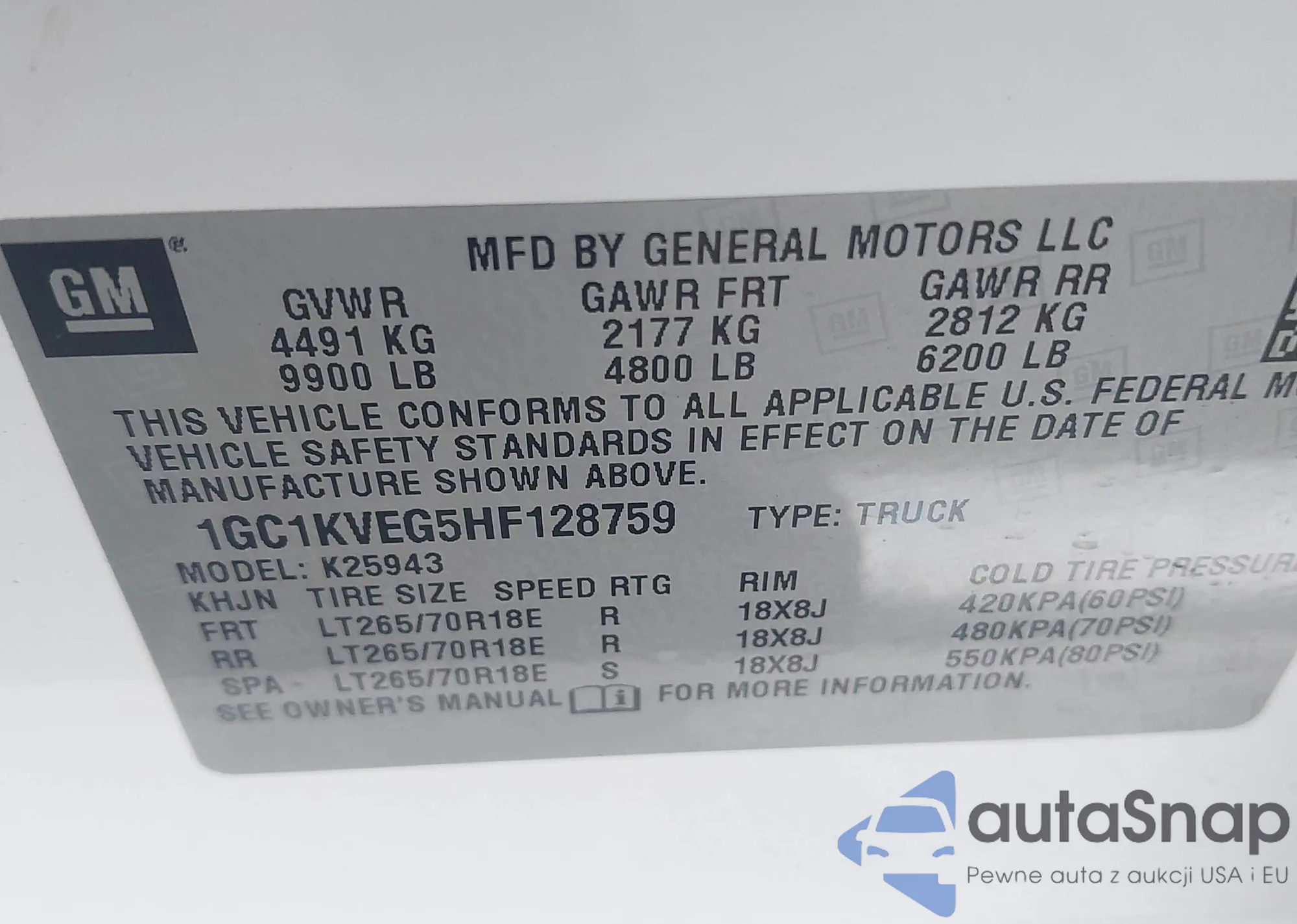 • VIN 1GC1KVEG5HF128759