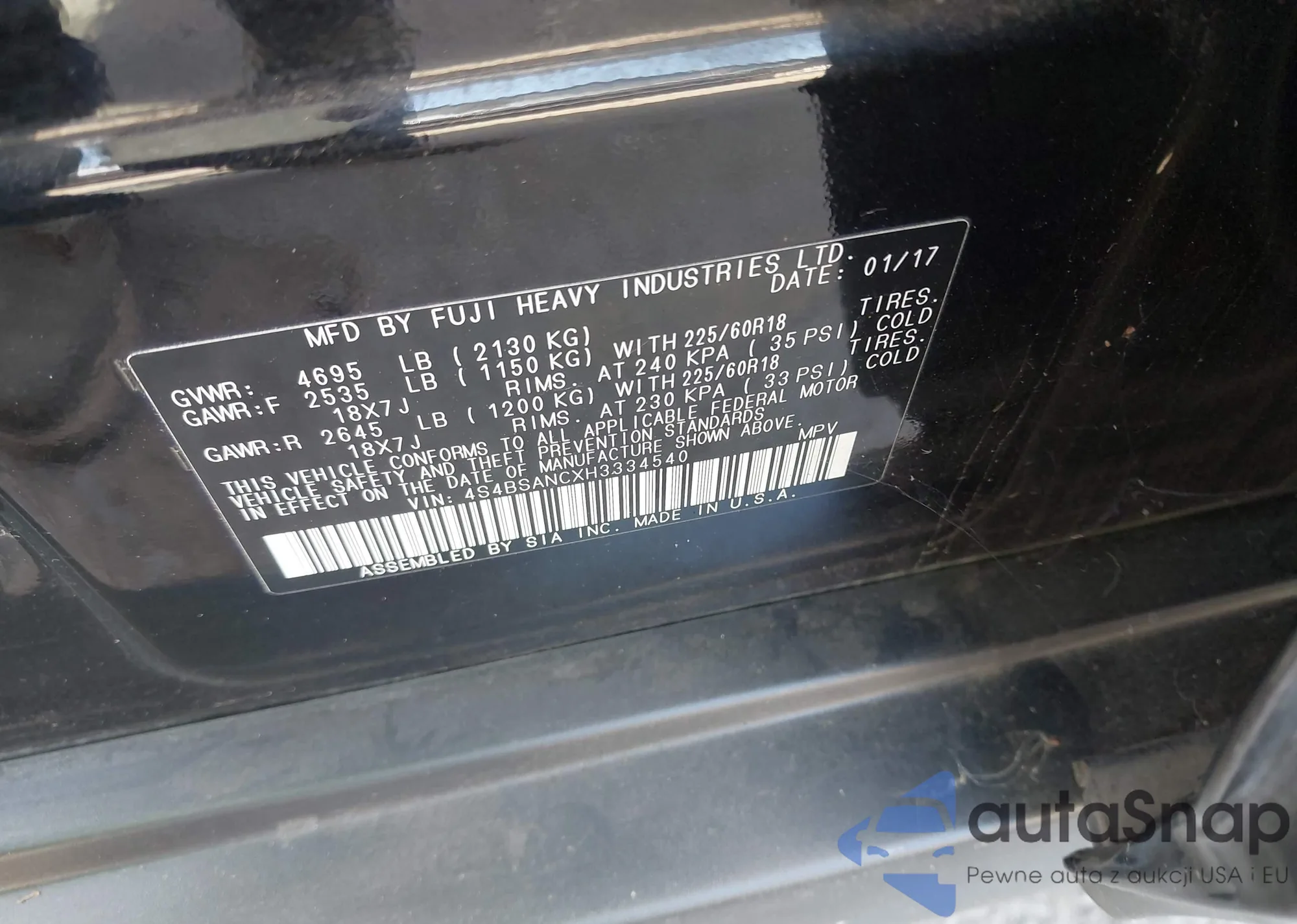 • VIN 4S4BSANCXH3334540