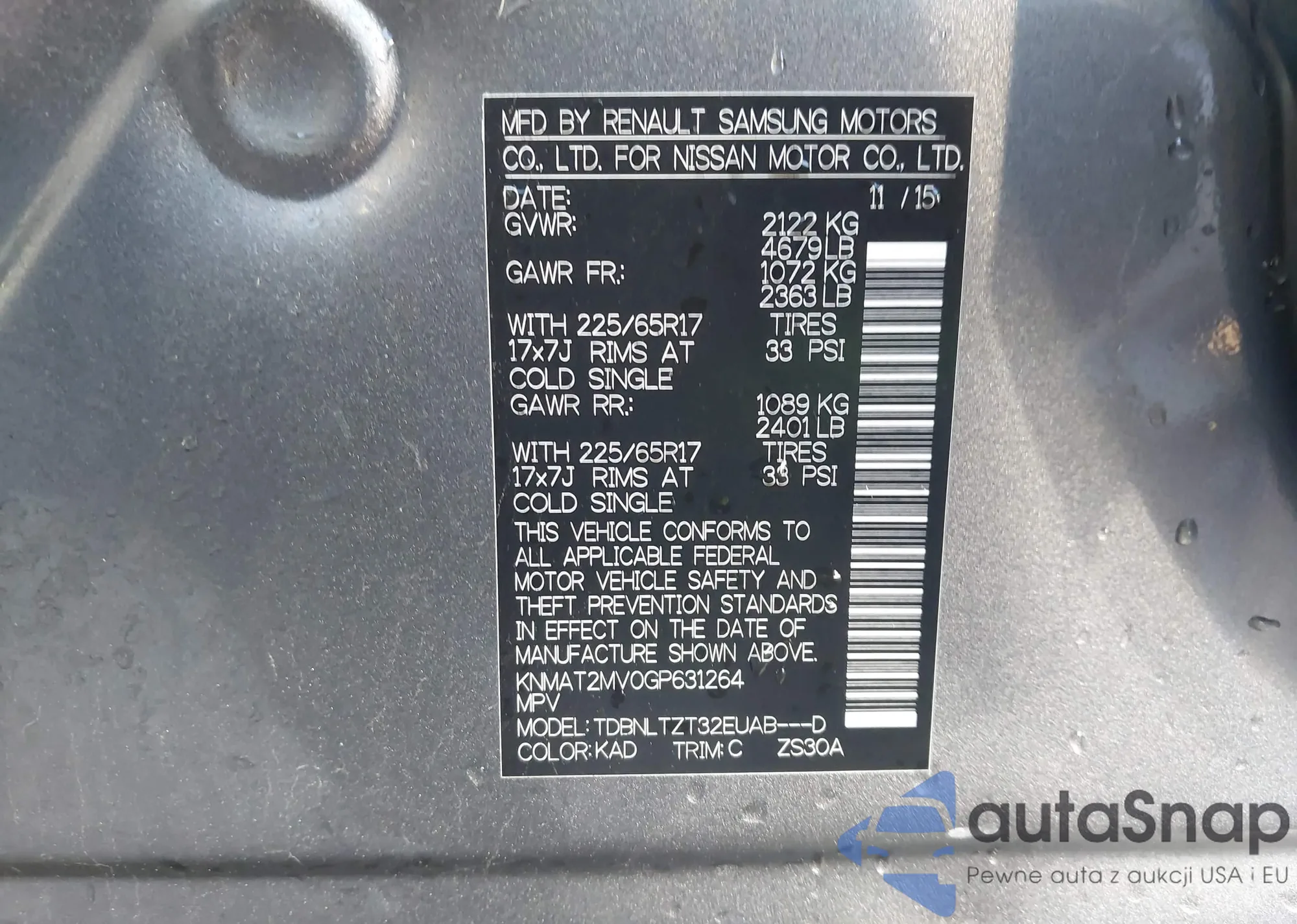 • VIN KNMAT2MV0GP631264