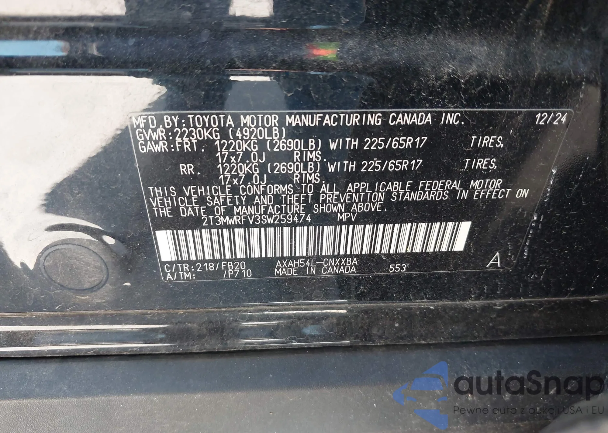 • VIN 2T3MWRFV3SW259474