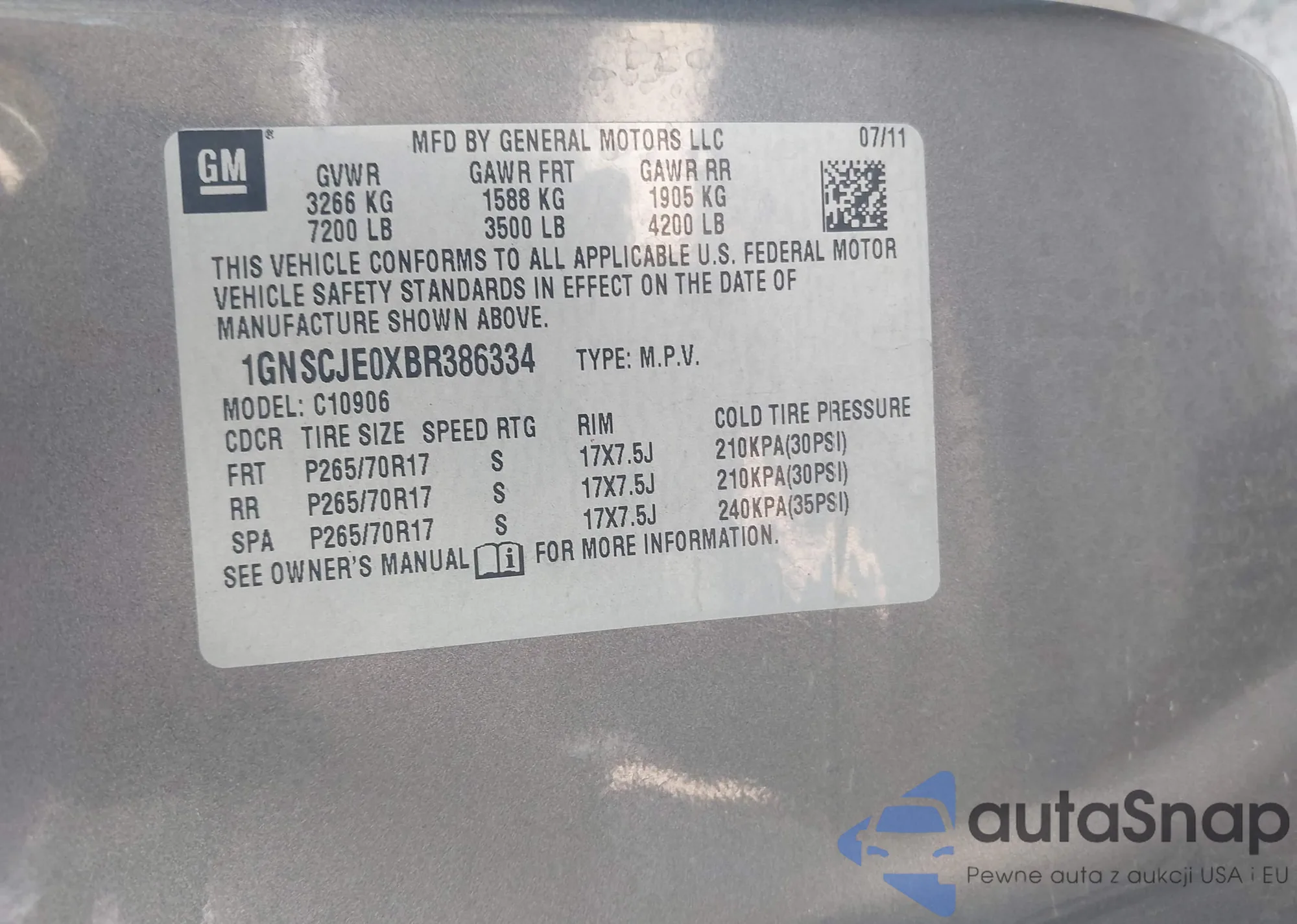 • VIN 1GNSCJE0XBR386334
