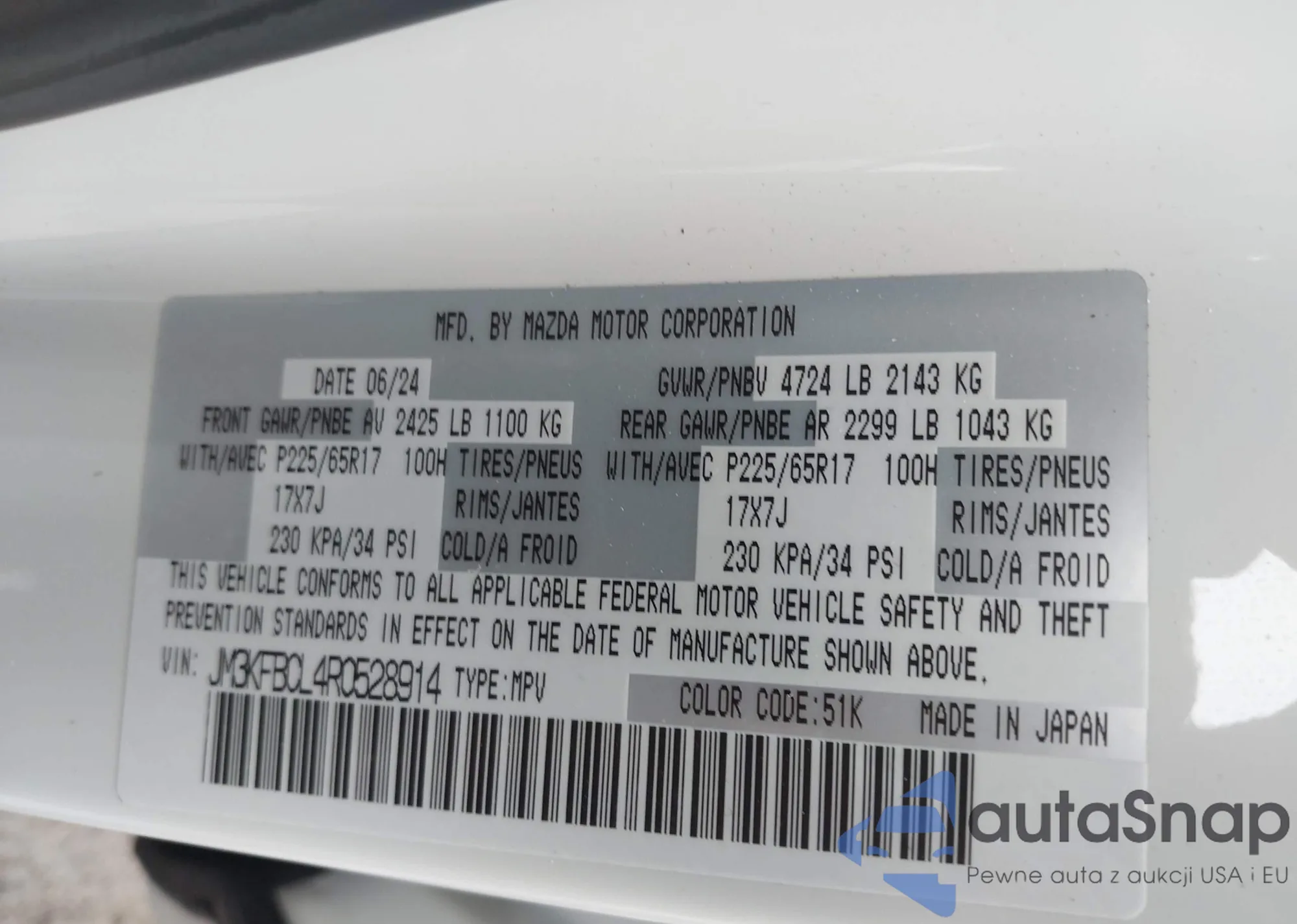 LOT: 43400189 VIN: JM3KFBCL4R0528914