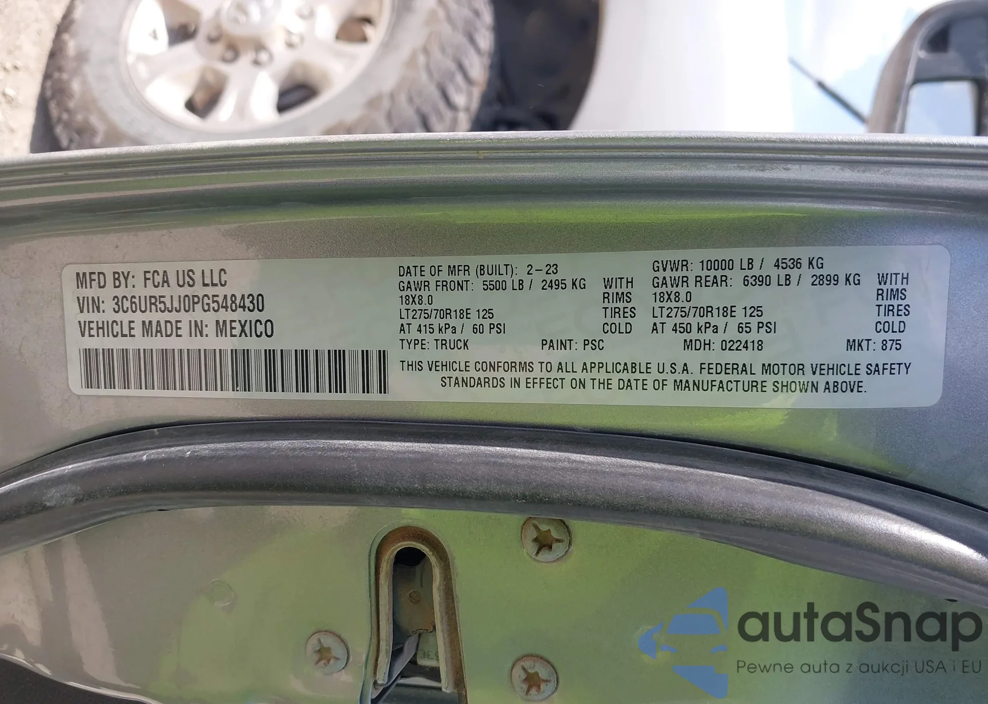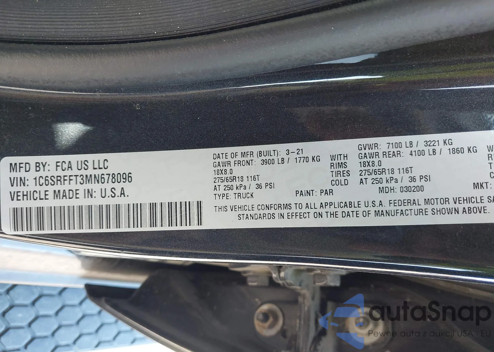 LOT: 43408161 VIN: 1C6SRFFT3MN678096