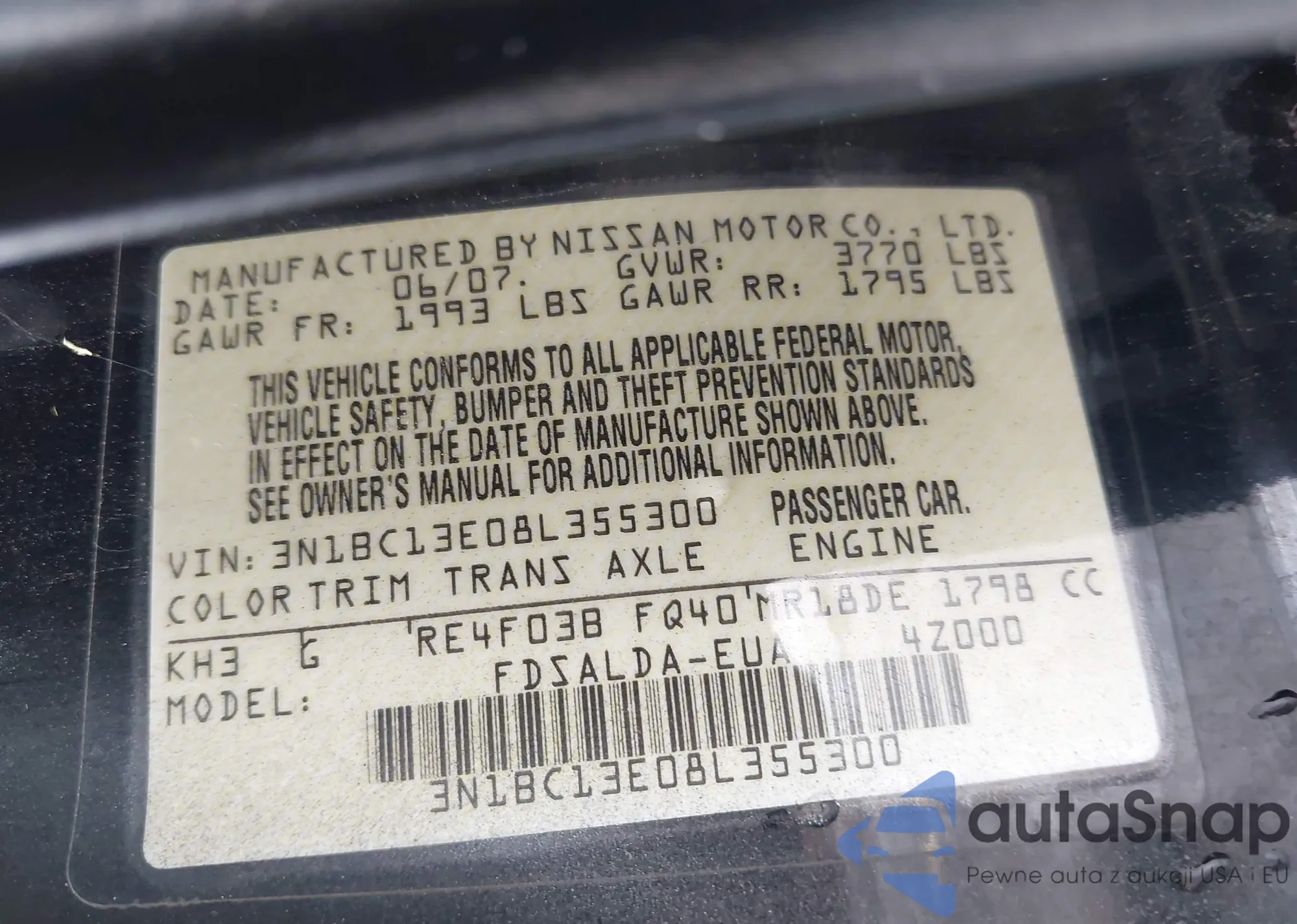 • VIN 3N1BC13E08L355300