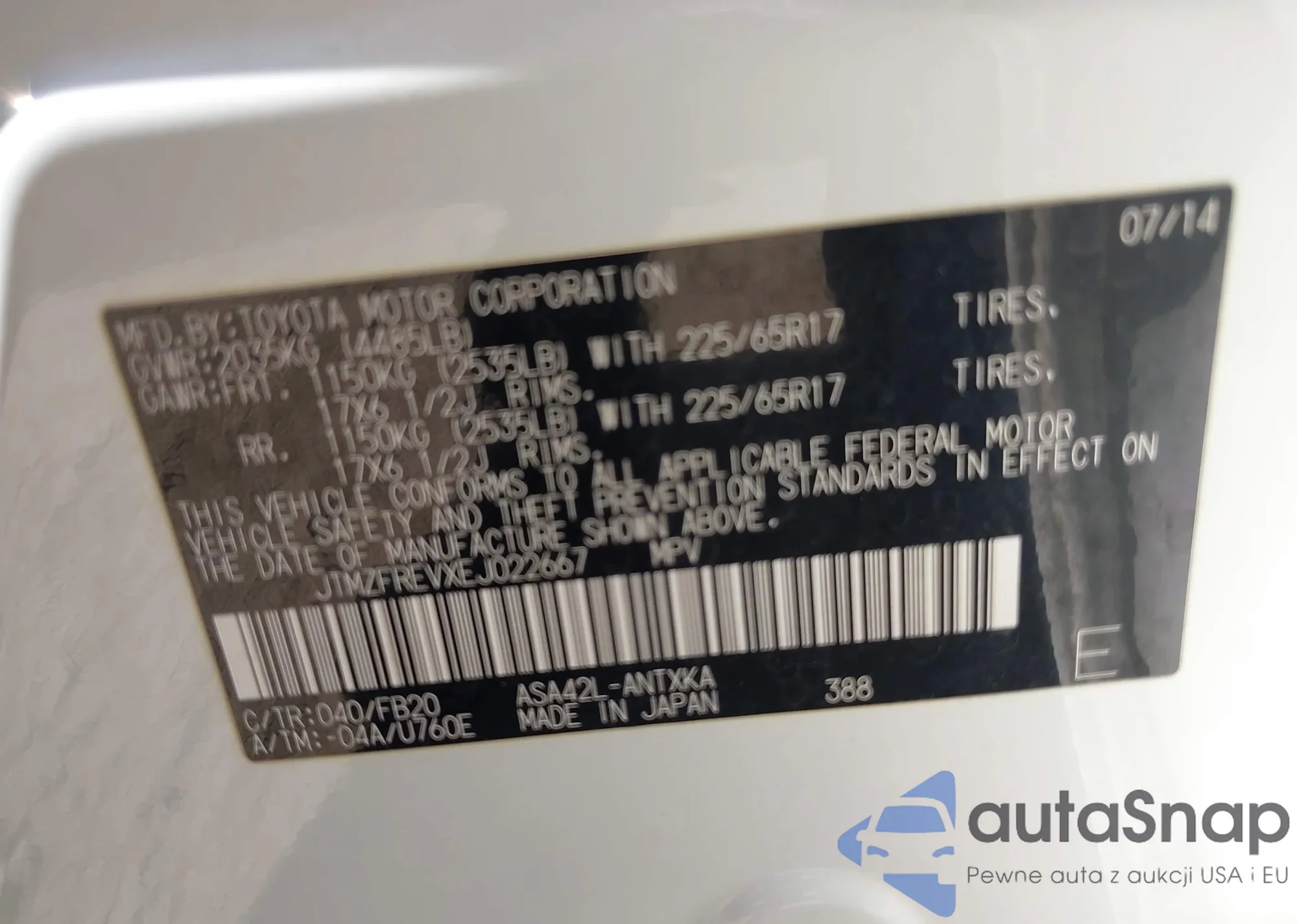 LOT: 43458286 VIN: 4T4BF1FK3ER398117