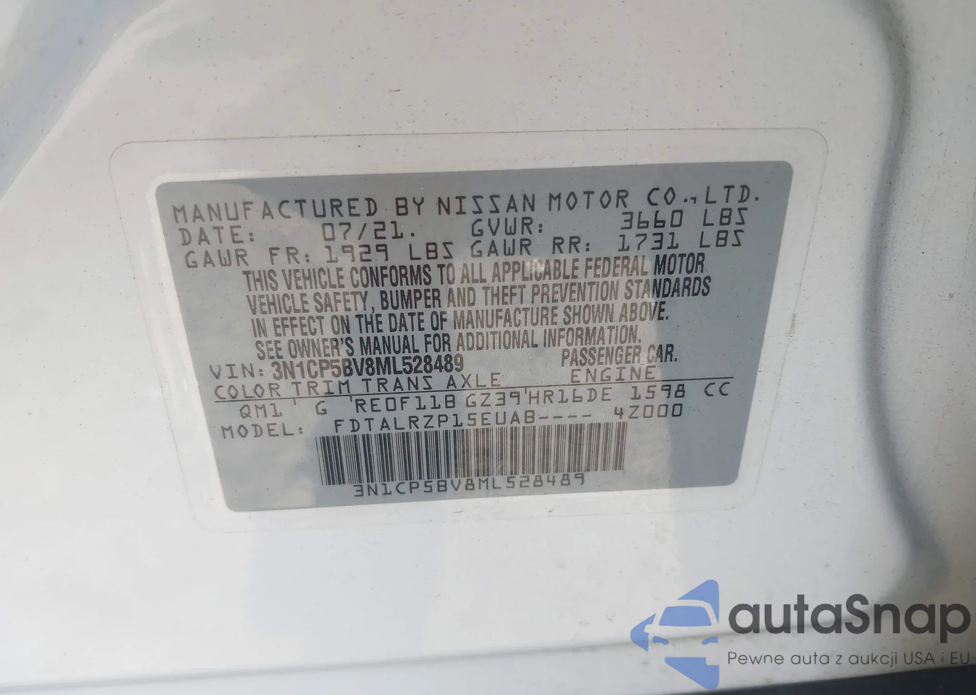 • VIN 3N1CP5BV8ML528489