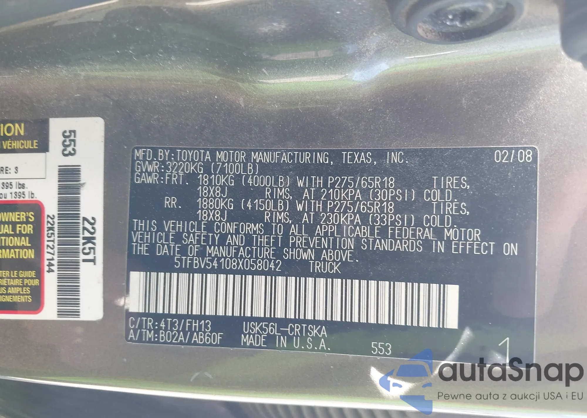 LOT: 43512397 VIN: JT3GP10V2W7035588