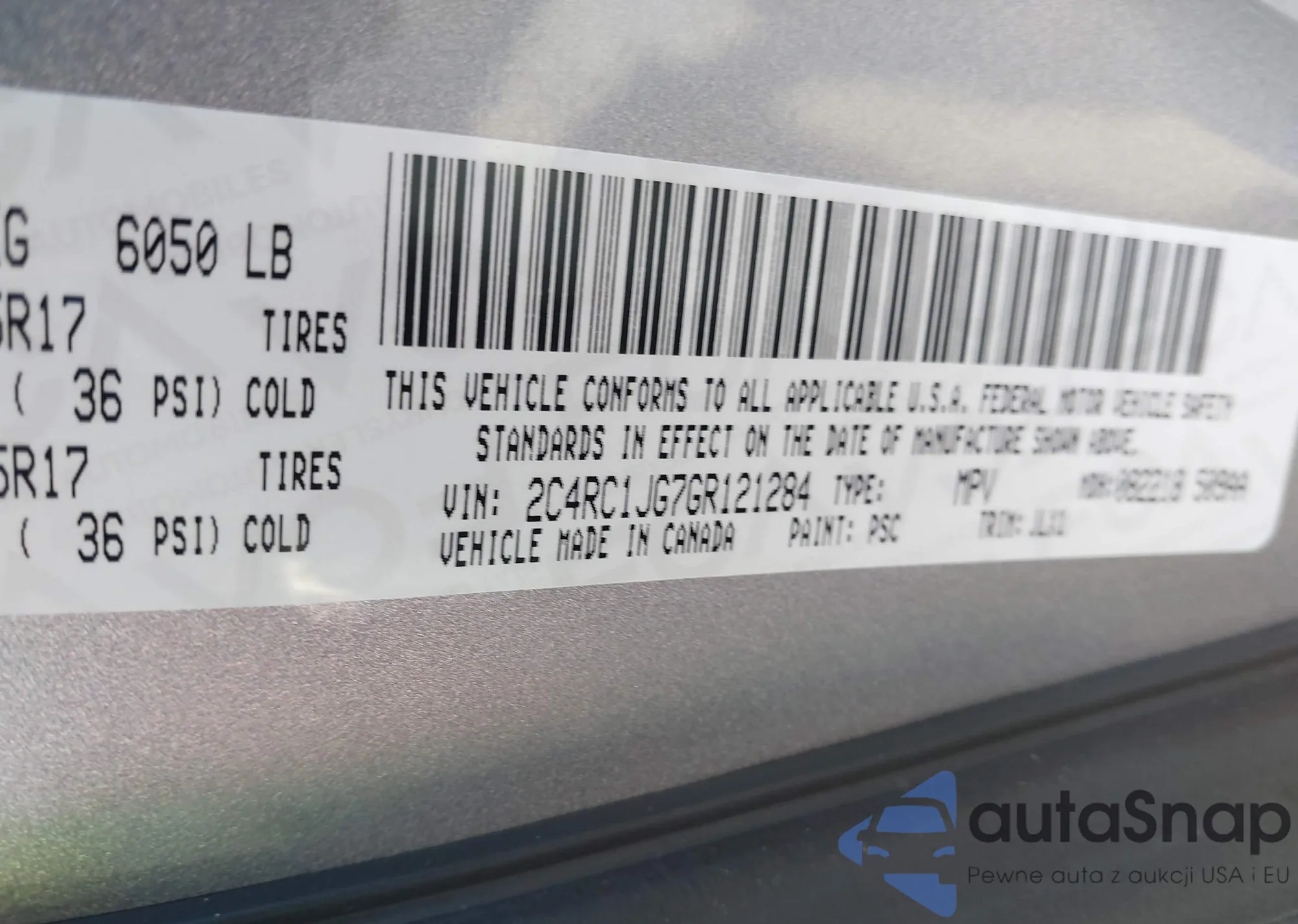 • VIN 2C4RC1JG7GR121284