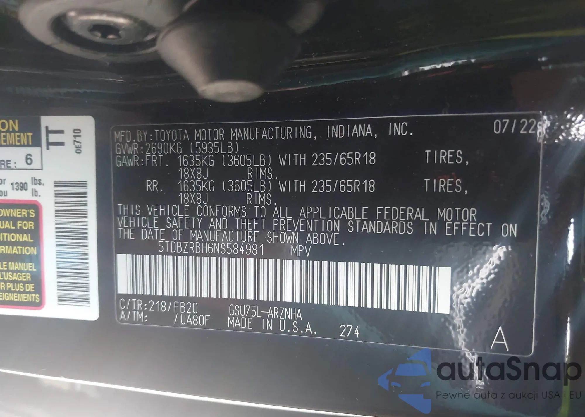 LOT: 43327946 VIN: JTMZD32V165029279