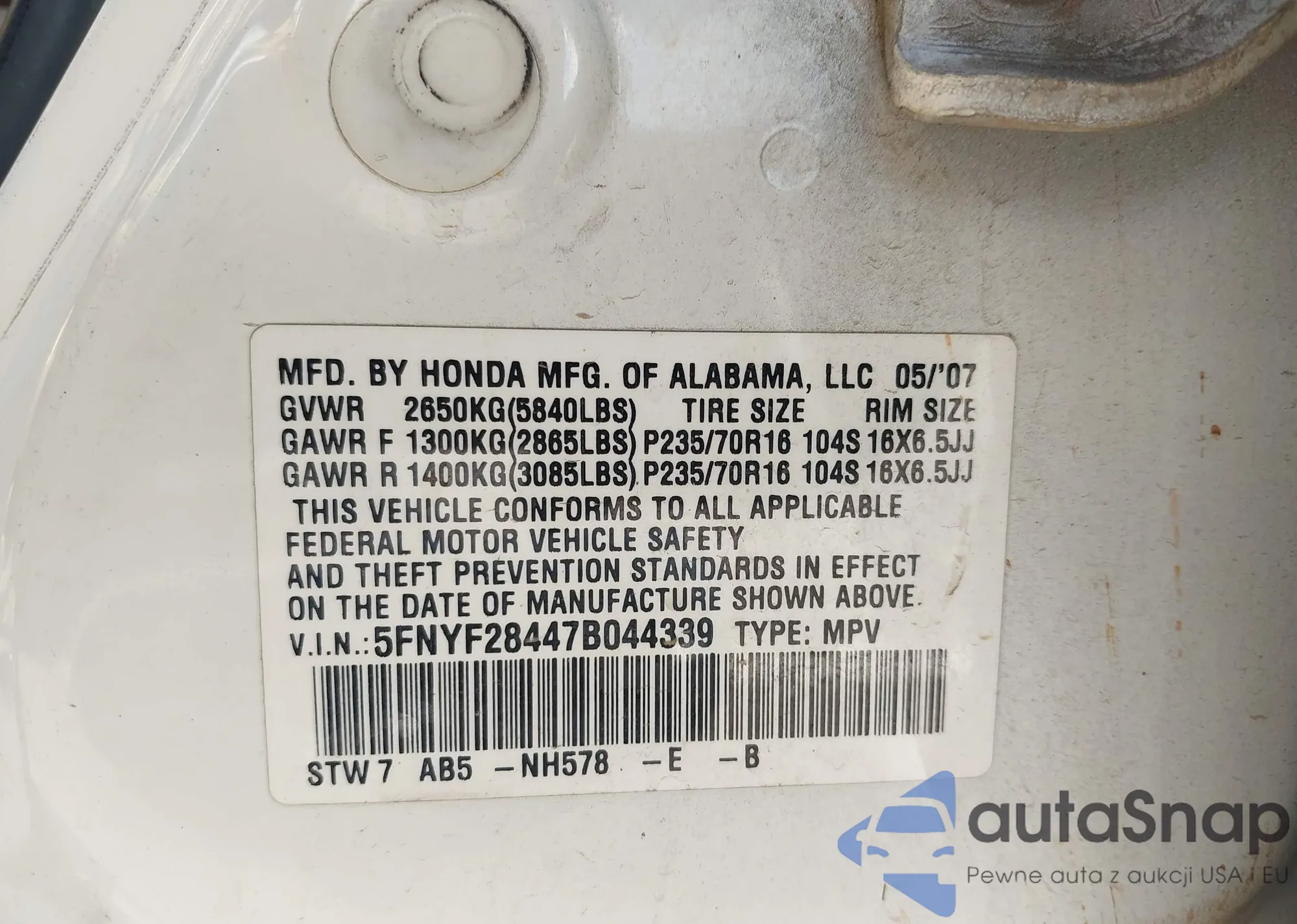 • VIN 5FNRL6H75JB013624