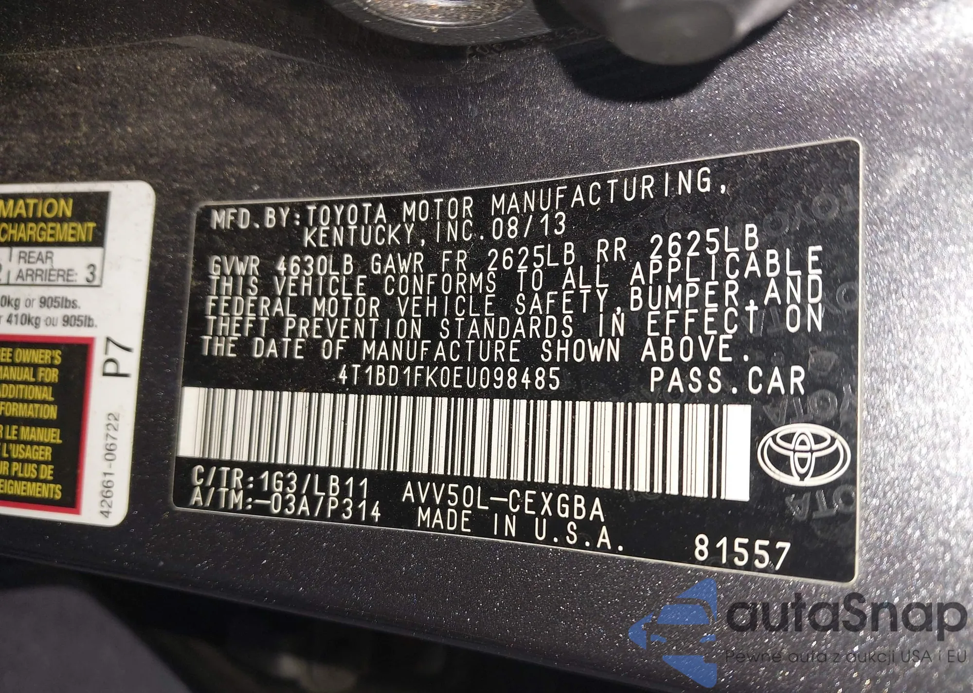 • VIN 4T1K61BK8RU122182