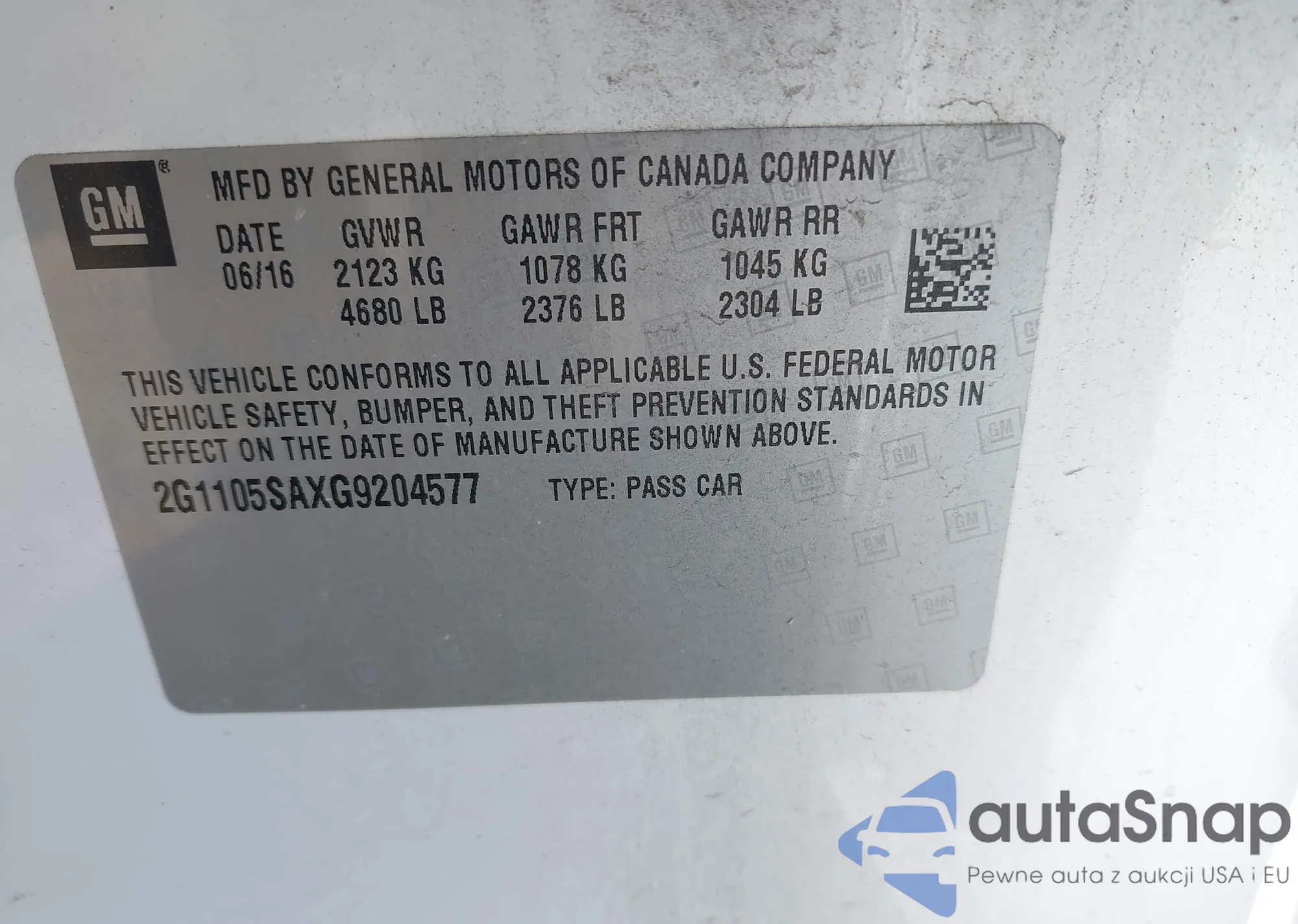 • VIN 2G1105SAXG9204577