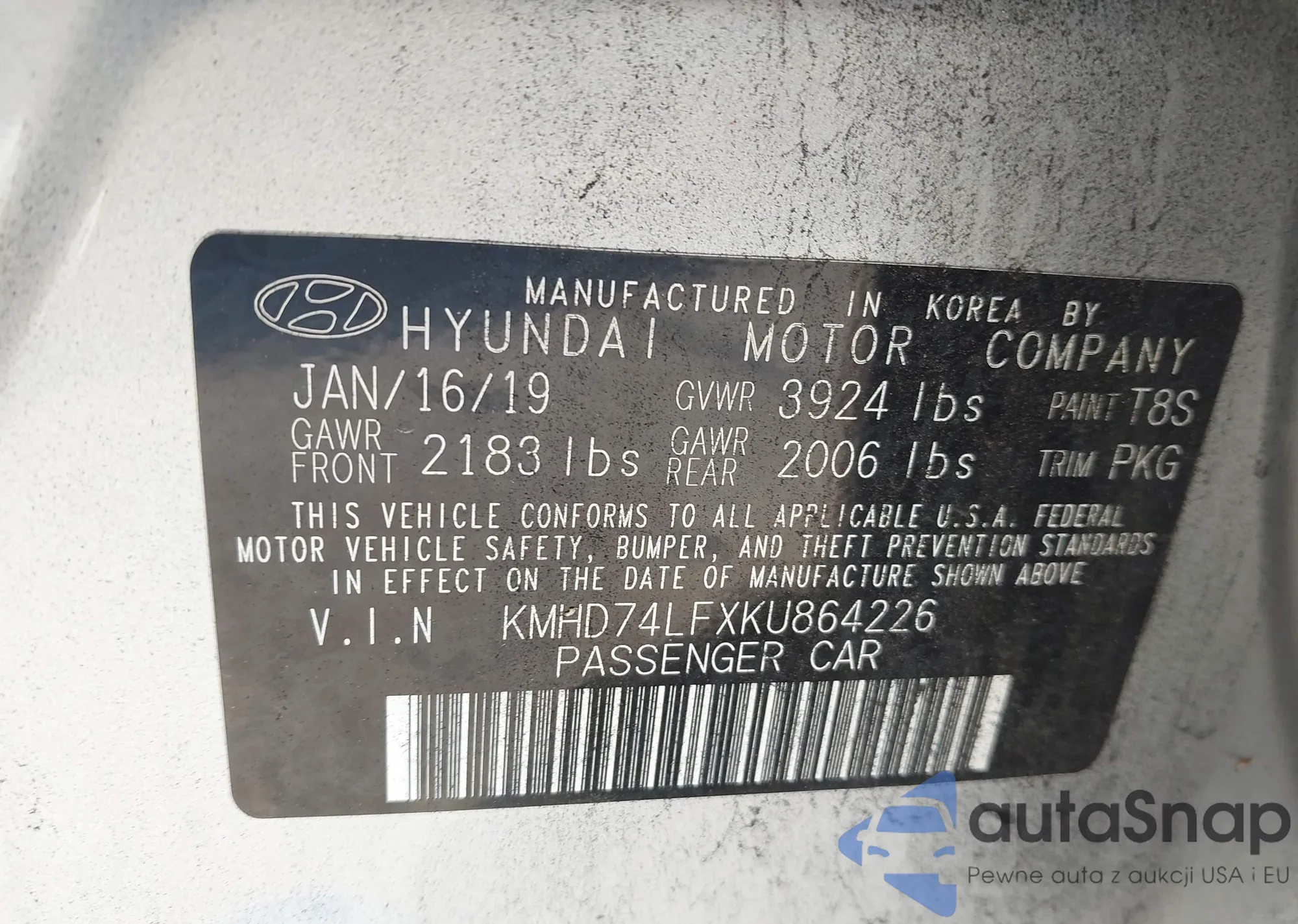 LOT: 43113534 VIN: KMHD74LFXKU864226