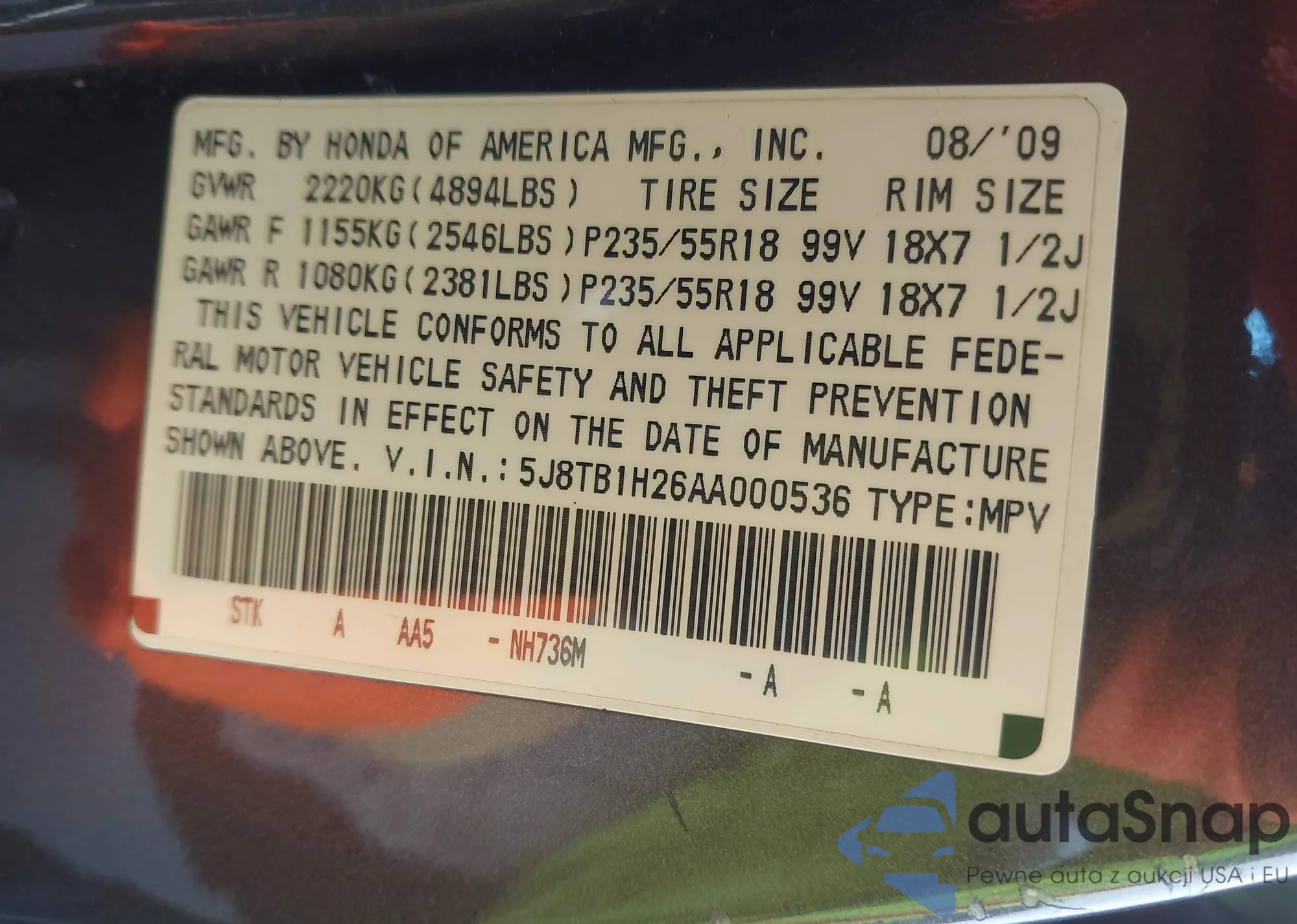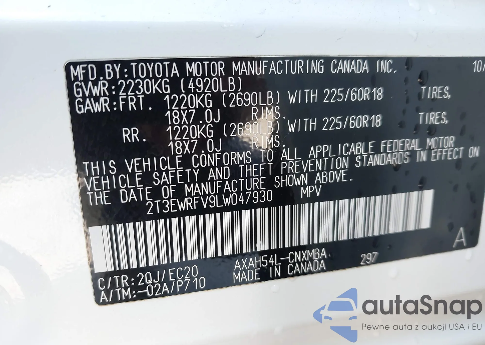 • VIN 2T3EWRFV9LW047930