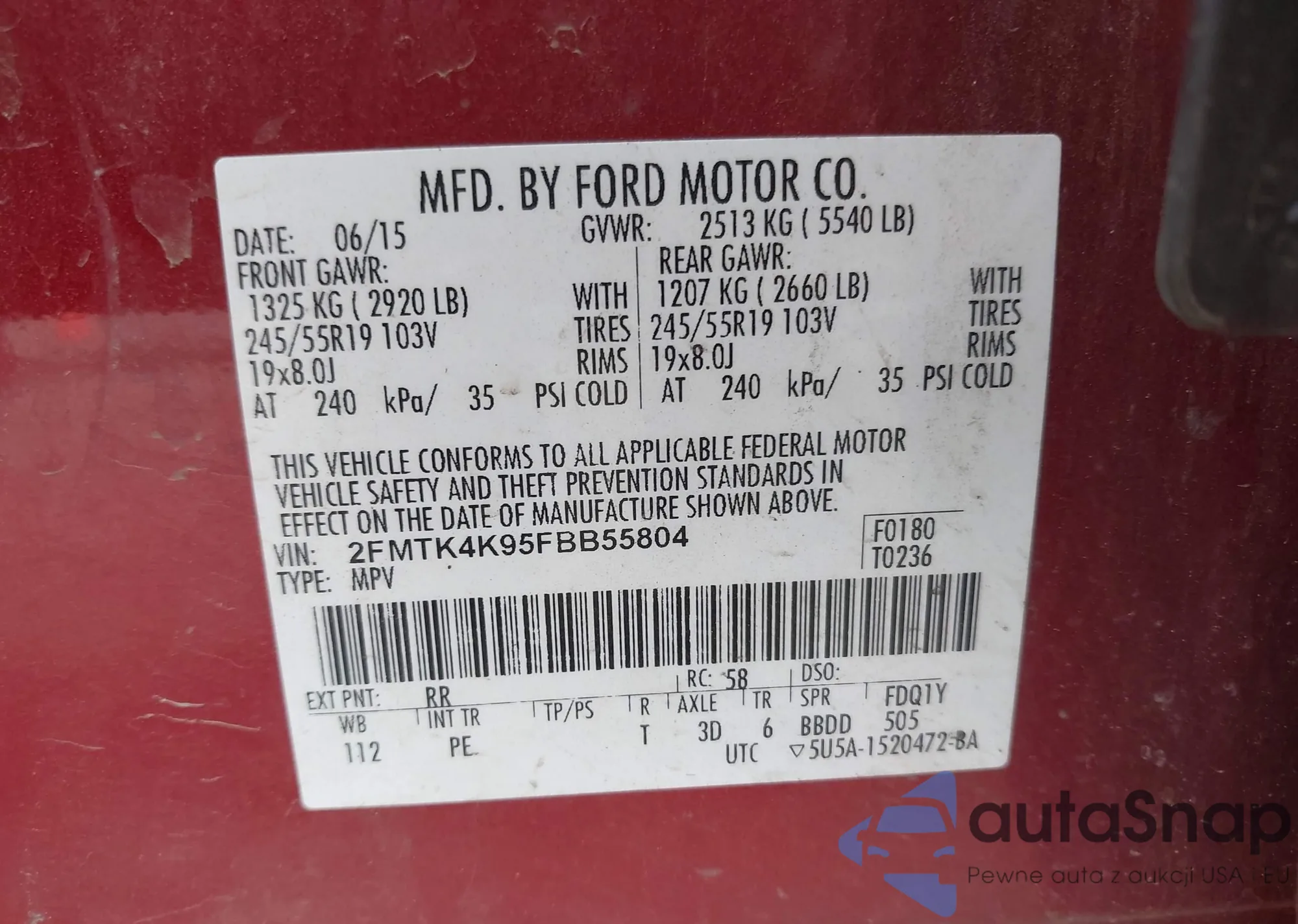 • VIN 2FMTK4K95FBB55804
