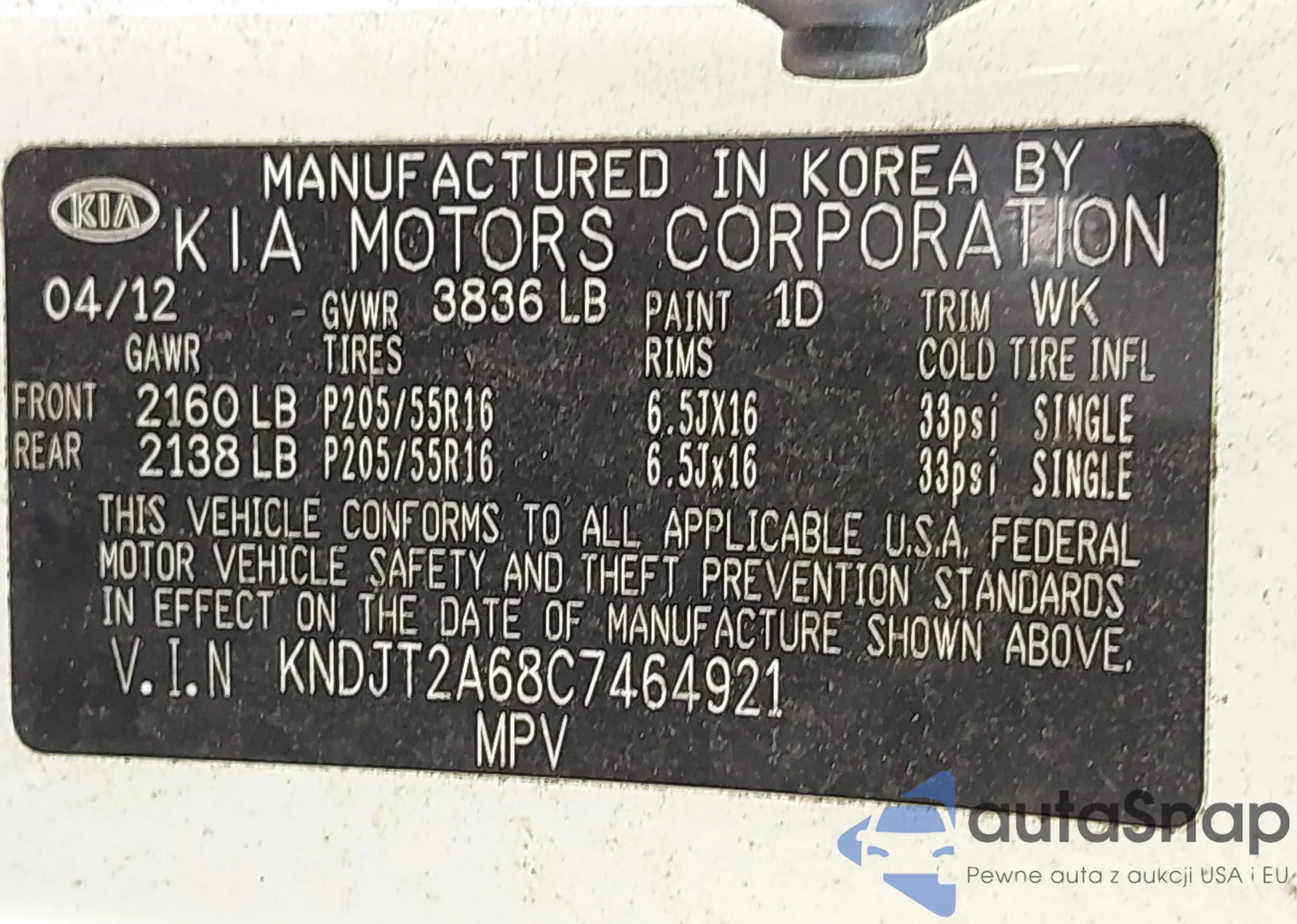 • VIN KNDJT2A68C7464921
