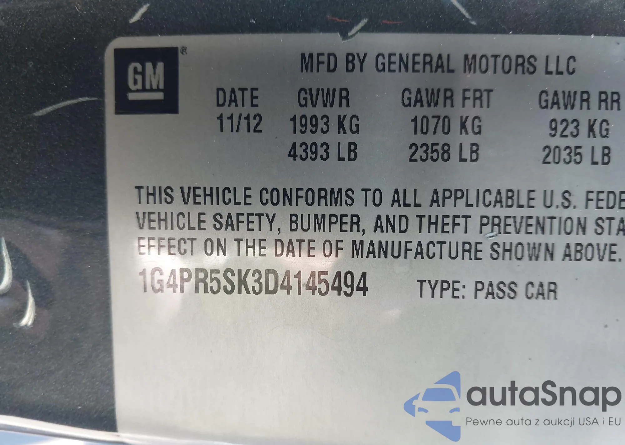 LOT: 43109525 VIN: 1G4PR5SK3D4145494
