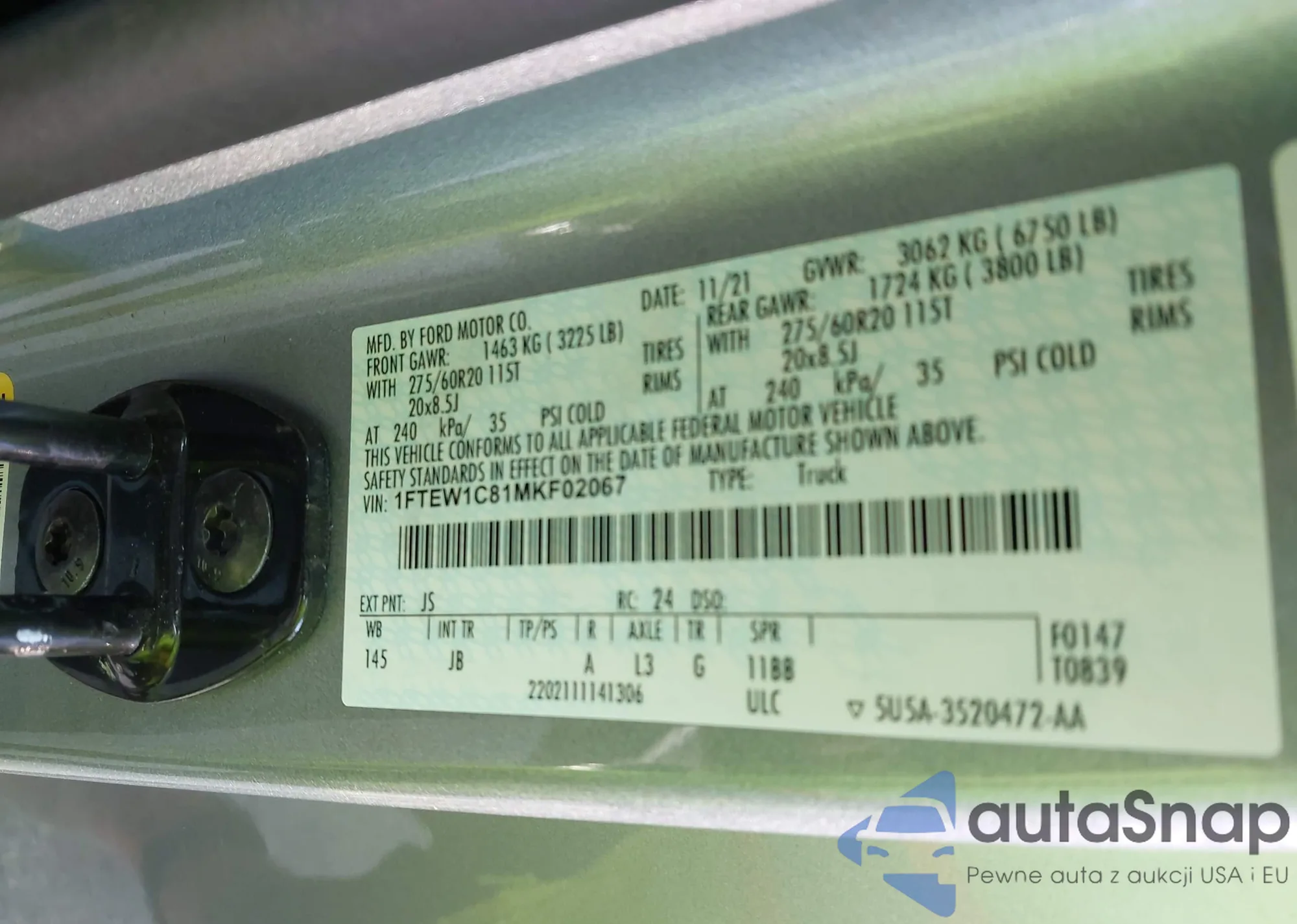 • VIN 1FTEW1C81MKF02067
