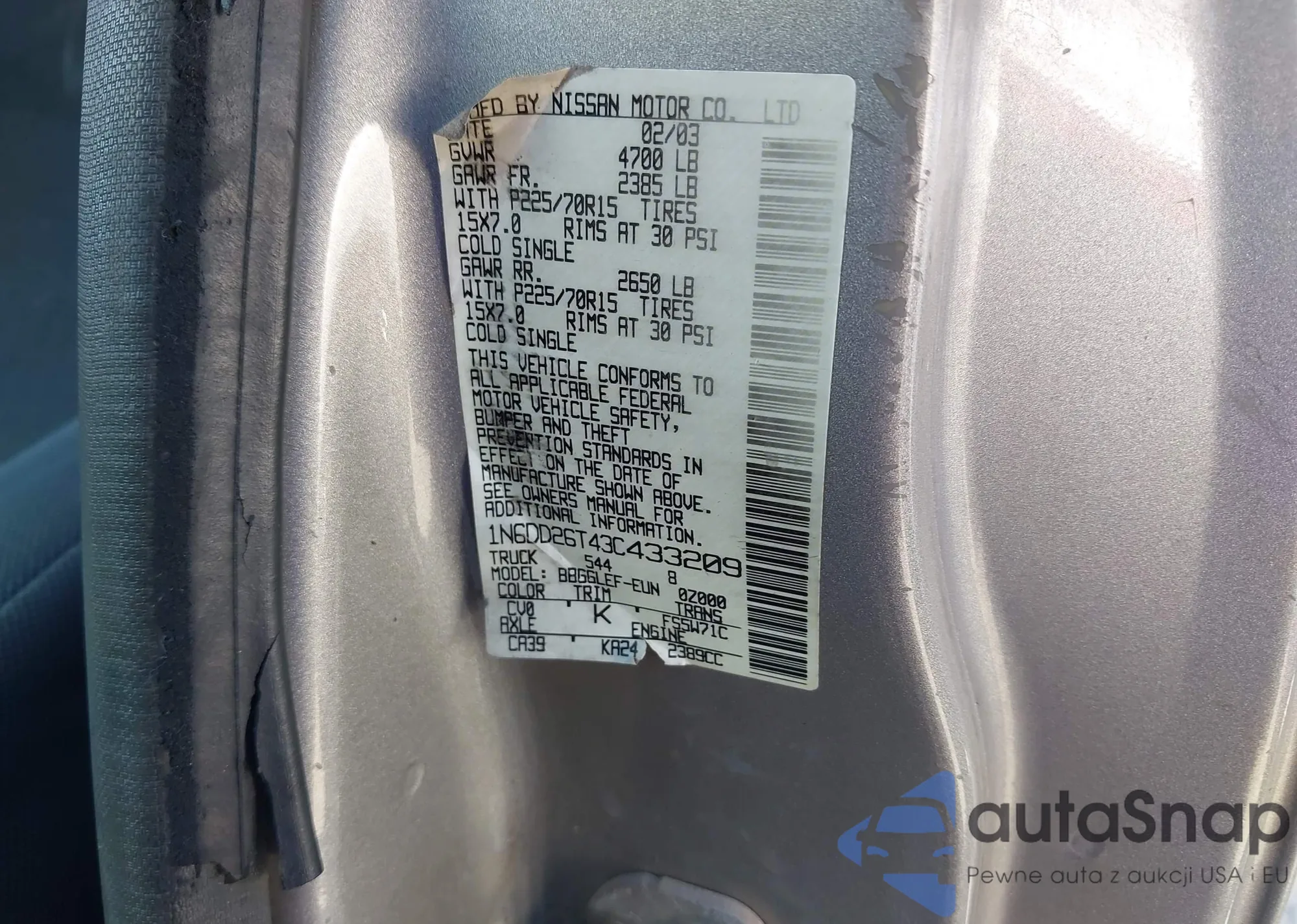 • VIN 1N6DD26T43C433209