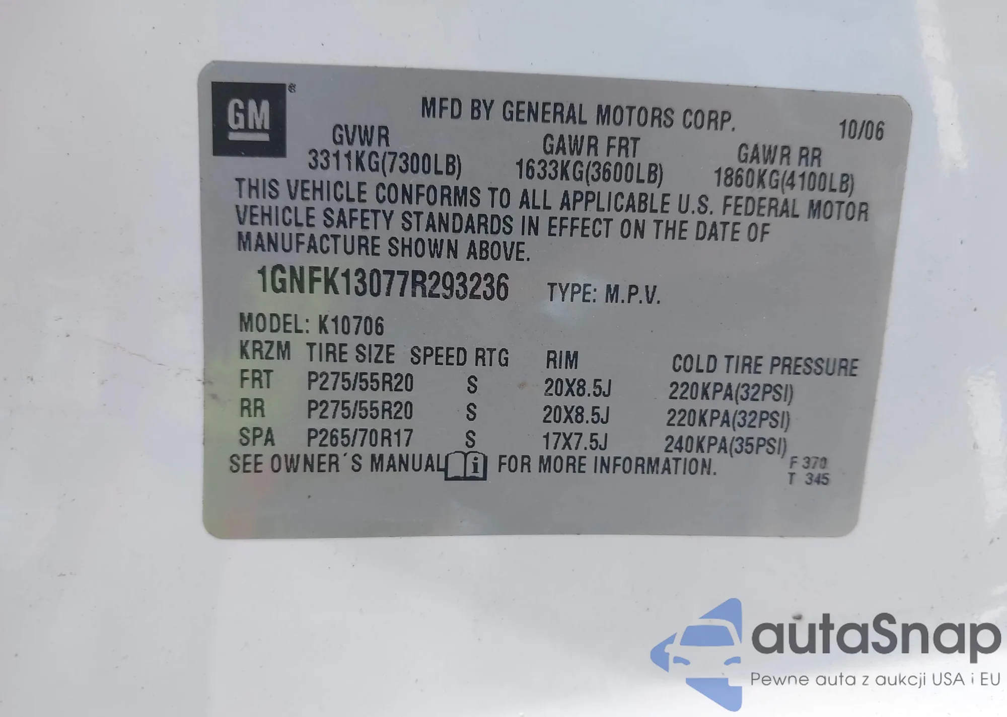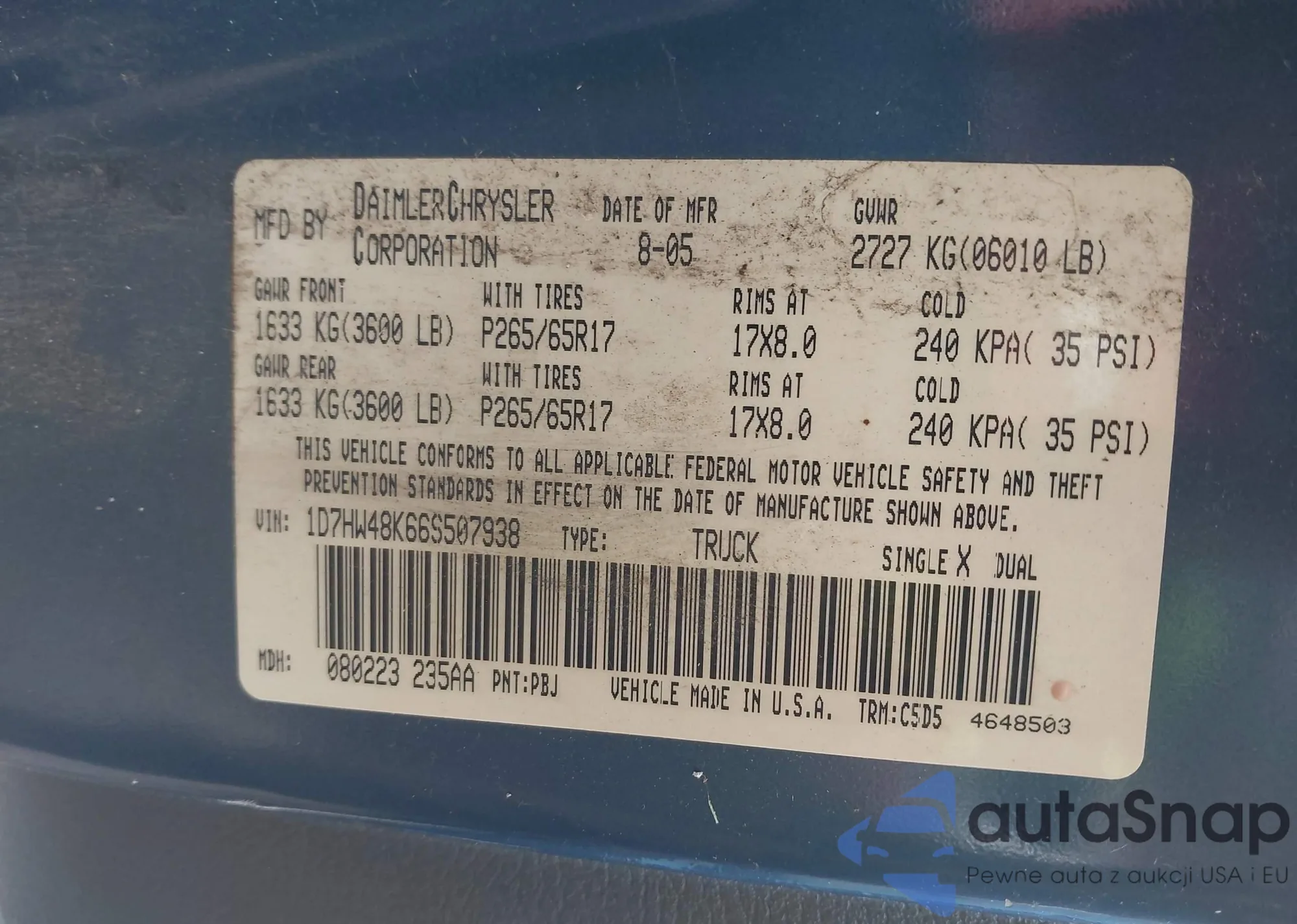 • VIN 1D7HW48K66S507938