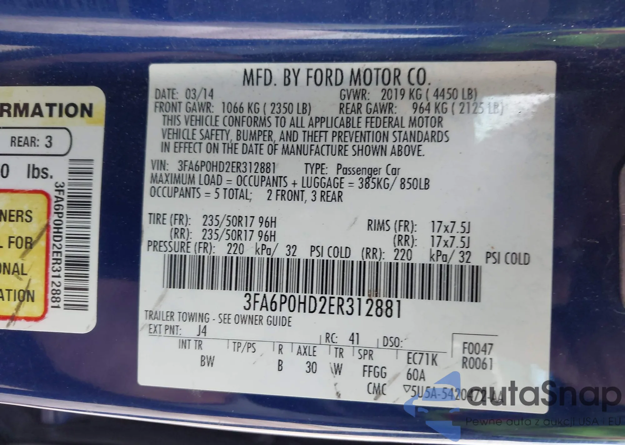 • VIN 3FA6P0HD2ER312881