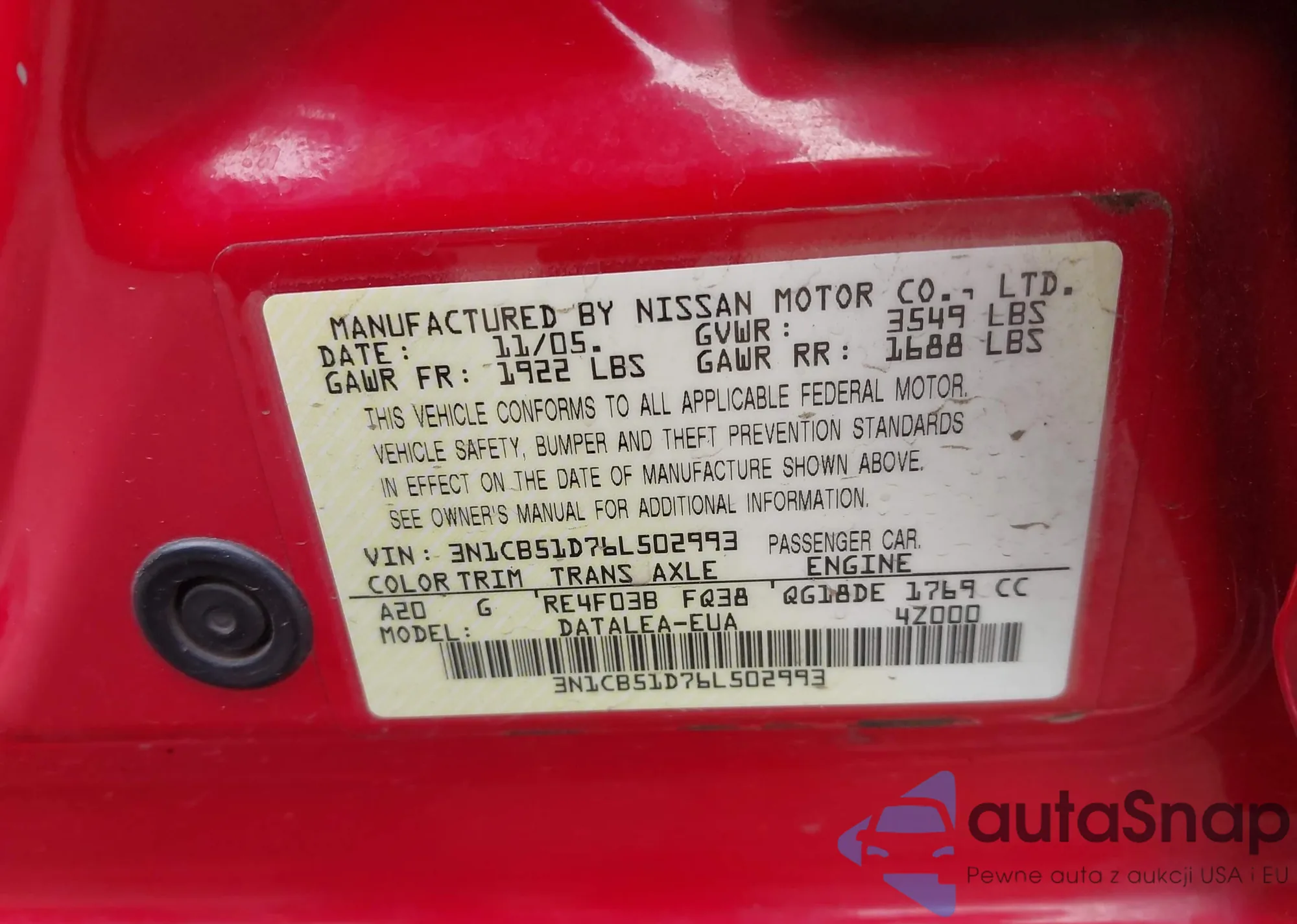 • VIN 3N1CB51D76L502993