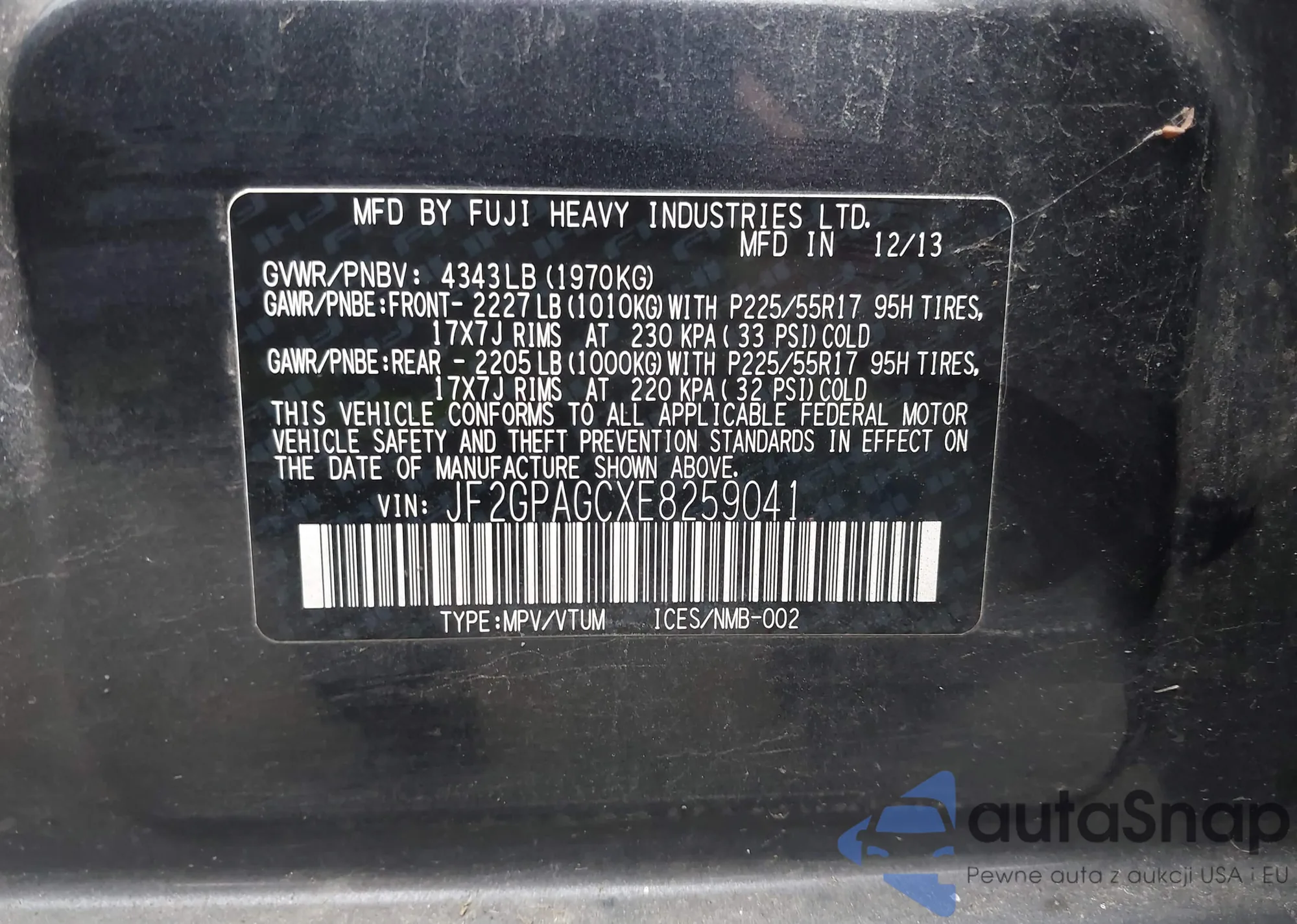 • VIN JF2GPAGCXE8259041