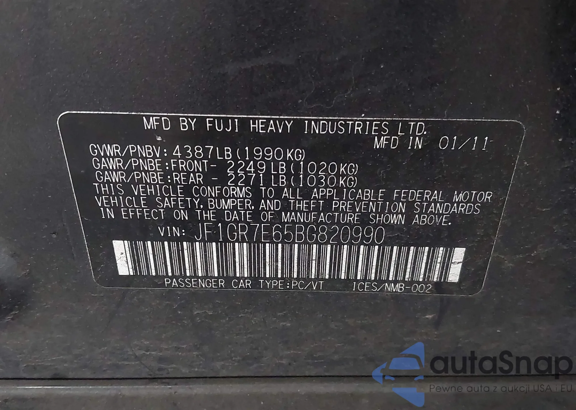 LOT: 43433046 VIN: JF1GR7E65BG820990