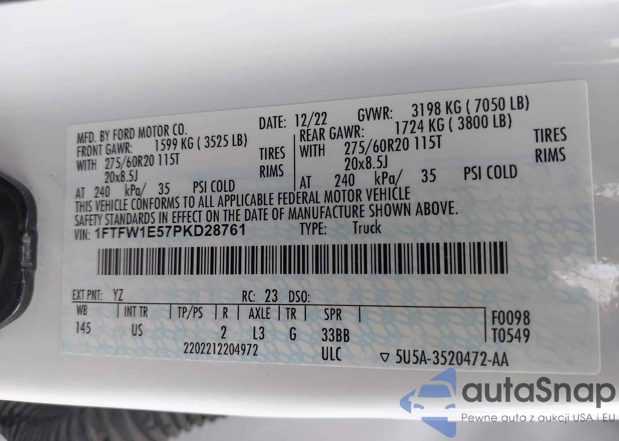 • VIN 1FTFW1CF2BFA11189