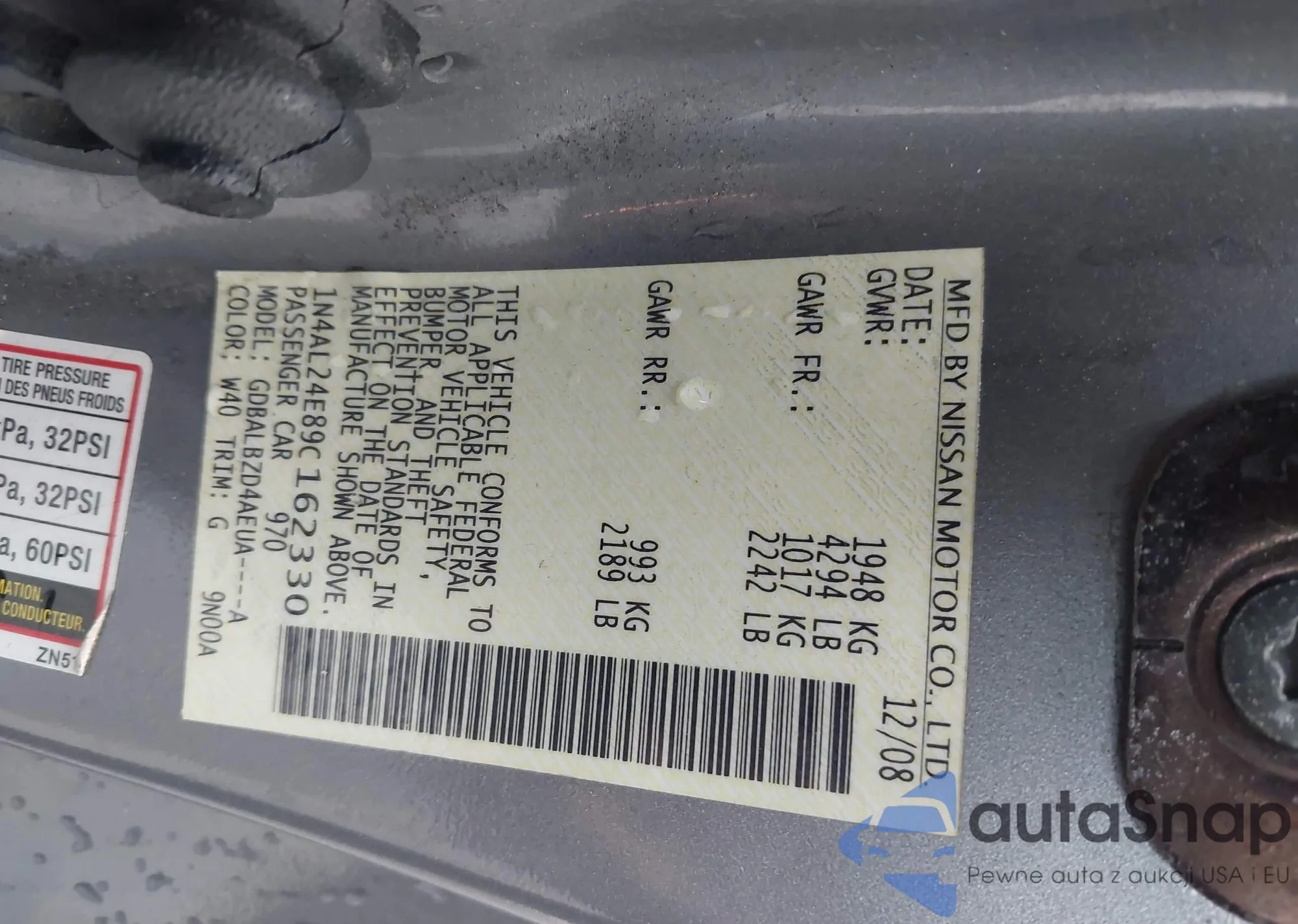 LOT: 43392987 VIN: 1N4AL24E89C162330